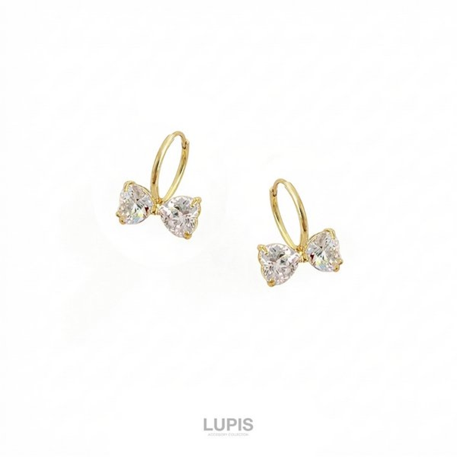多面カットのビジューが動くたびに煌めくリボンフープピアス。