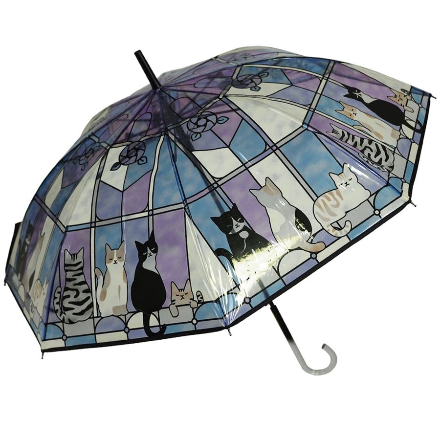 ねこ柄 ステンドグラス風 ビニール ジャンプ傘 猫 ネコ雨傘