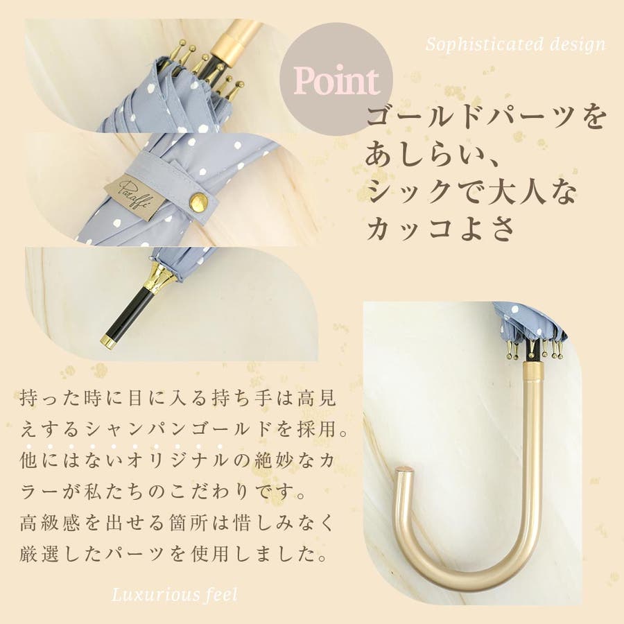 ボタン部分にあしらったParaffiロゴのタグは、傘を閉じる動作の中でふと目に留まる上品なアクセント。