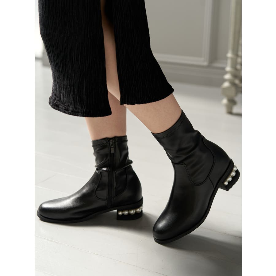 Realta(レアルタ)4.5cmパールヒールストレッチショートブーツ