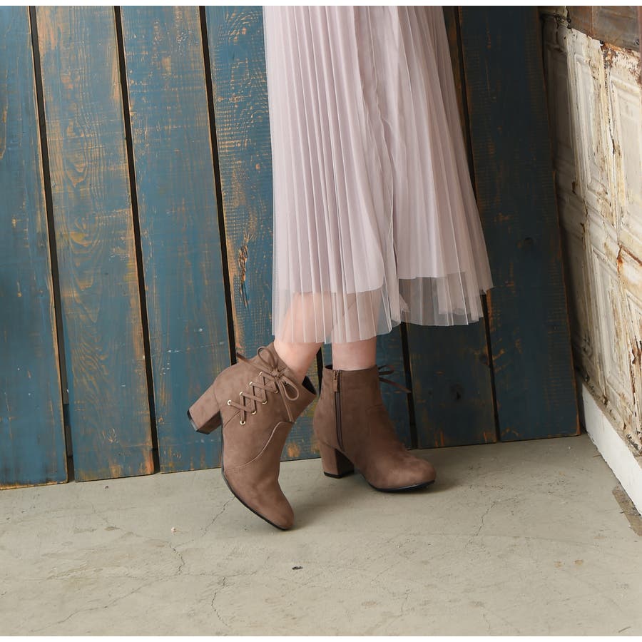 サイド編み上げが可愛いラウンドトゥショートブーツ。