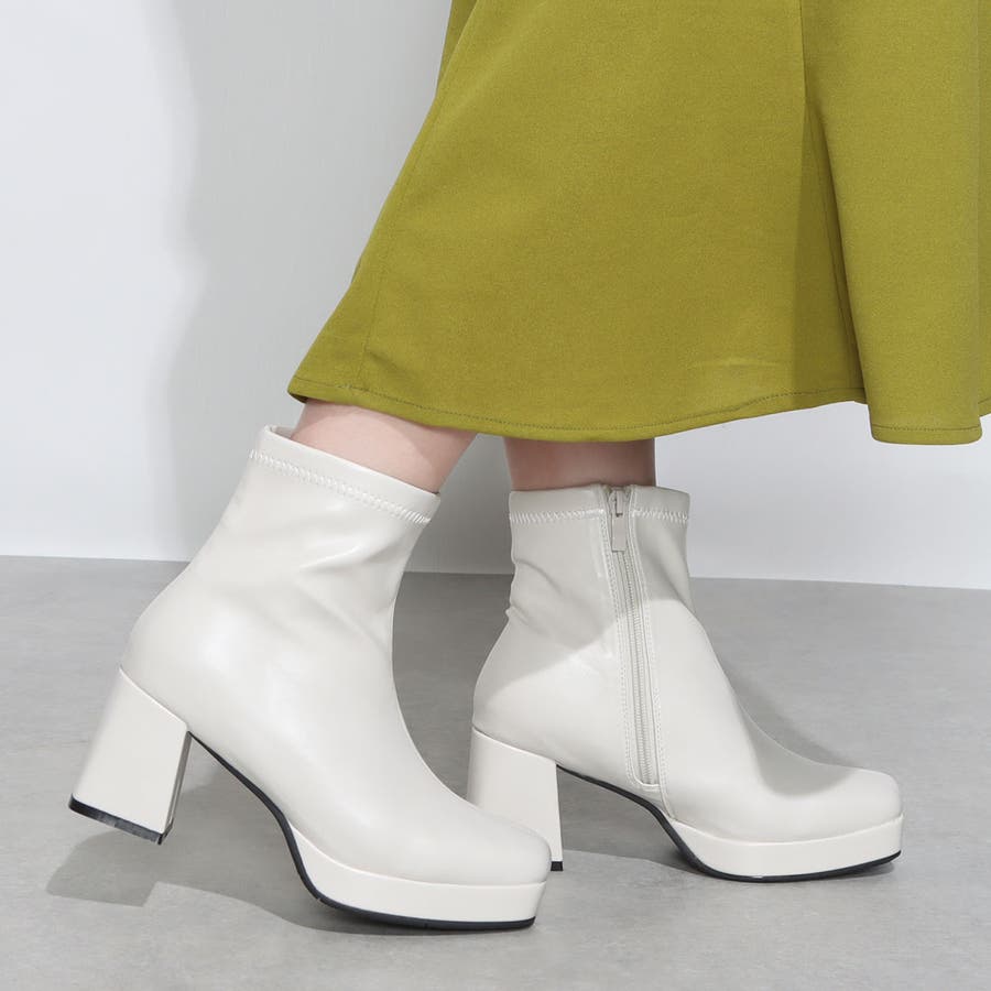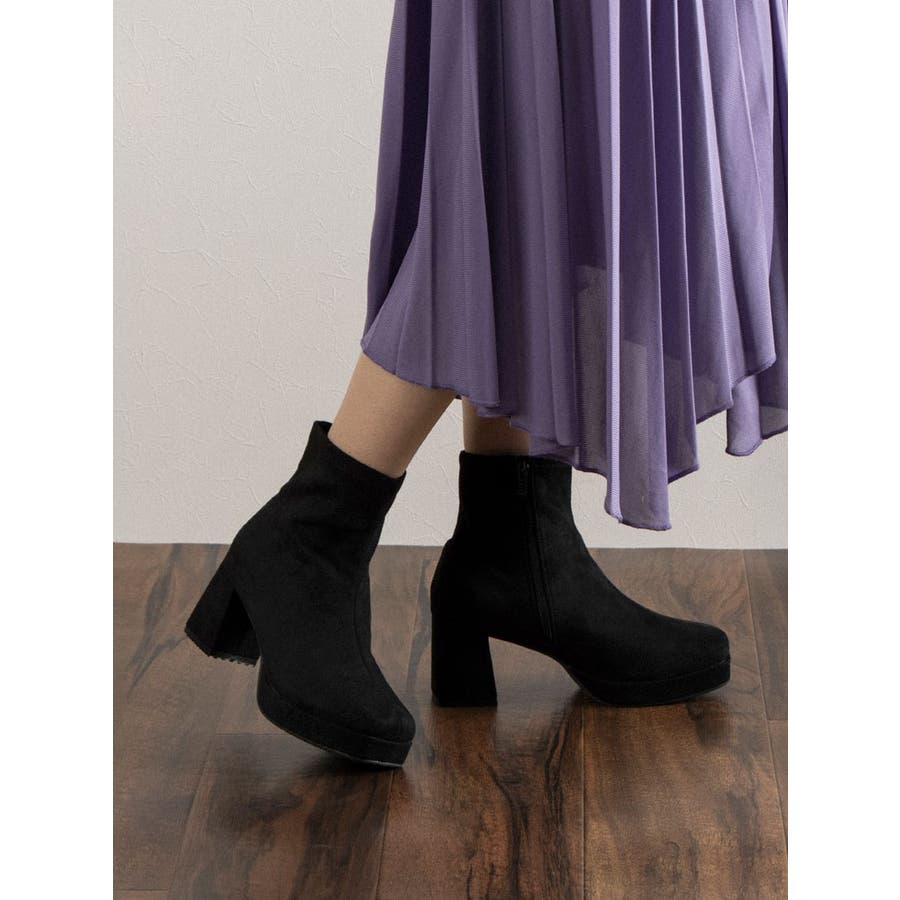 Realta(レアルタ)スクエアートゥ厚底ストレッチアッパーショートブーツ