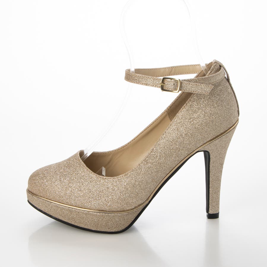 MiminyPiminy ゴールドラインピース付きアンクルストラップ パンプス
