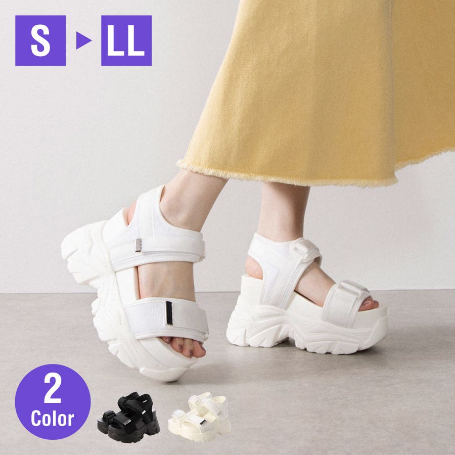 Mafmof(マフモフ)10 5cm厚底ボリュームソールダブルベルトスポーツサン…