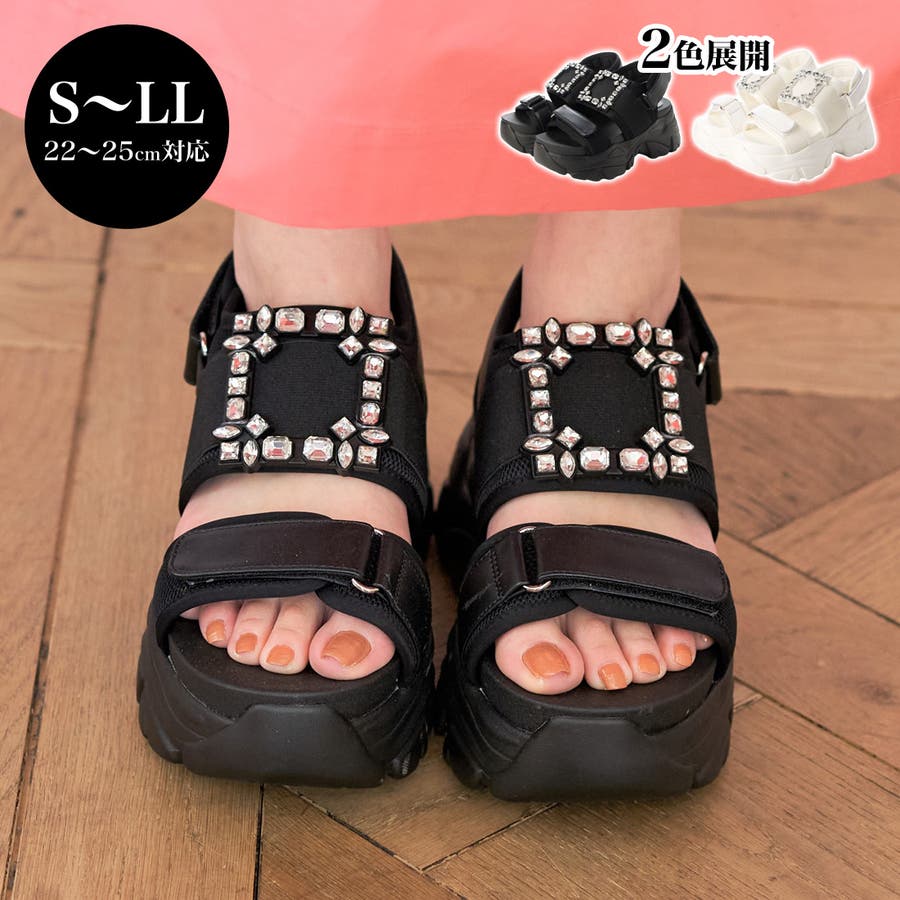Mafmof(マフモフ)ビジュー付き厚底ボリュームソールスポーツサンダル