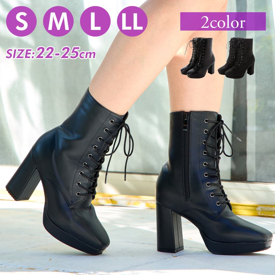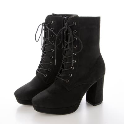 Mafmof9cmヒールストーム入りチャンキーヒールレースアップブーツ