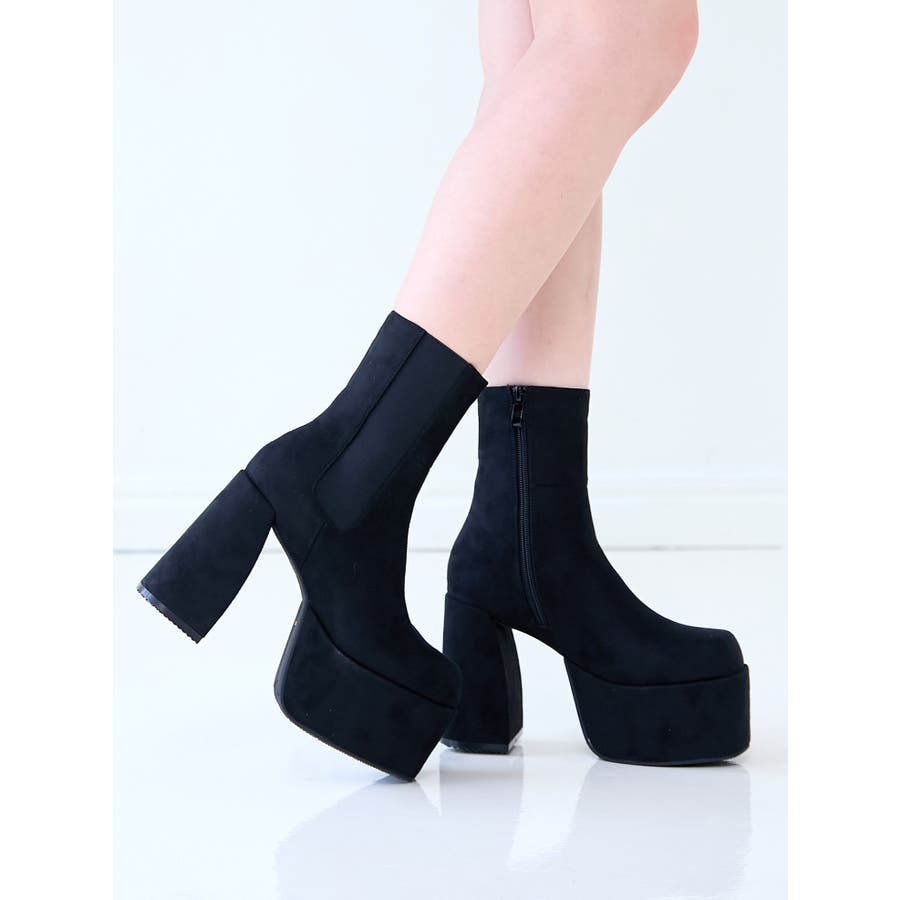 Mafmof(マフモフ)11 5cmバルキーヒールプランプサイドゴアショートブー…