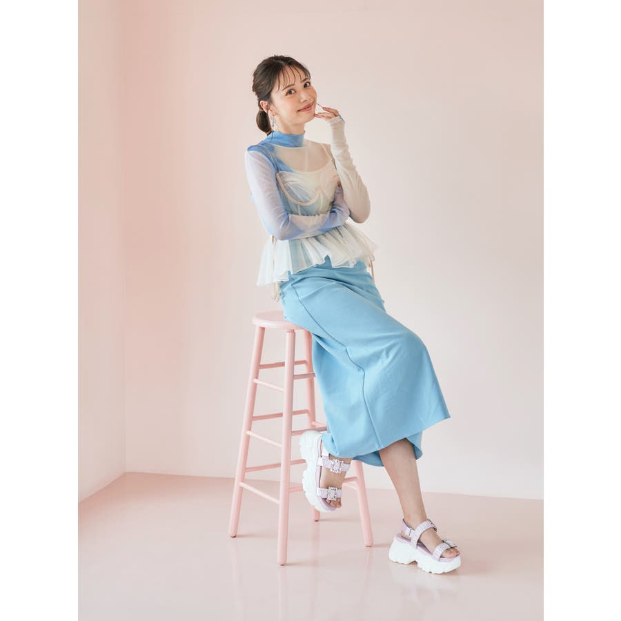 くしゅっとしたギャザーベルトが可愛い厚底サンダル。