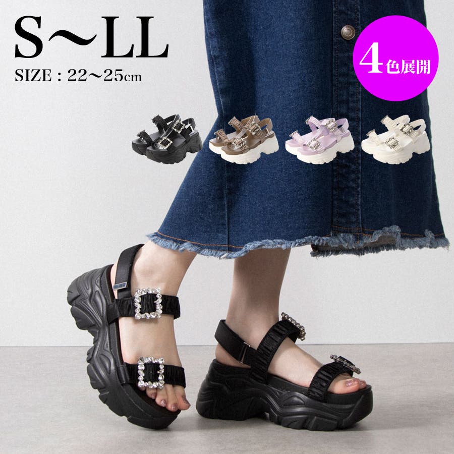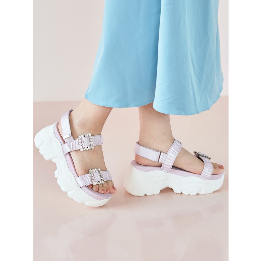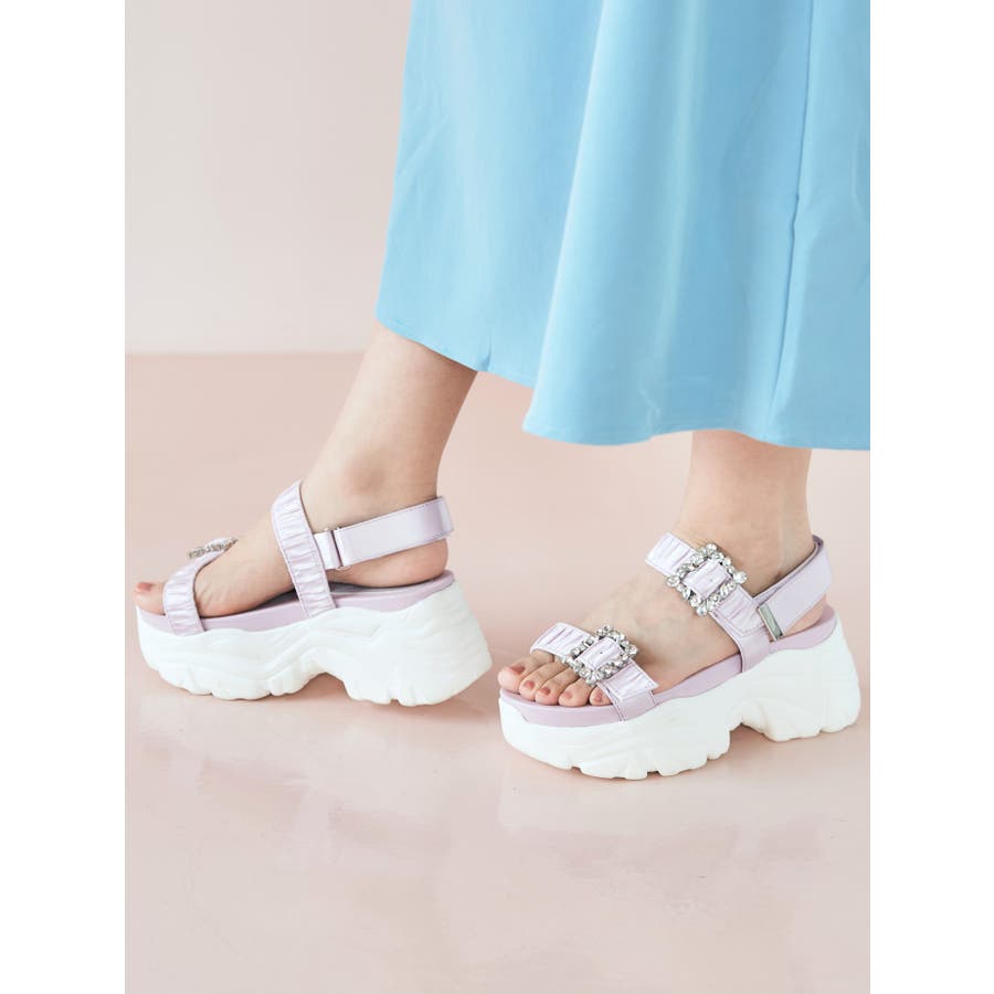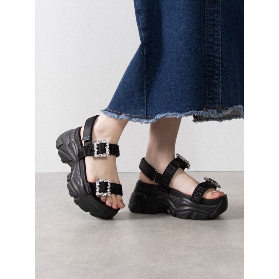 Mafmof(マフモフ)7 5cm厚底ソールビジュー×ギャザーベルトスポーツサン…