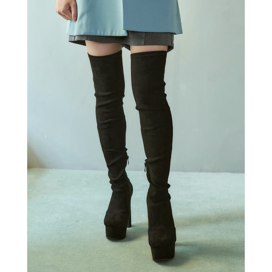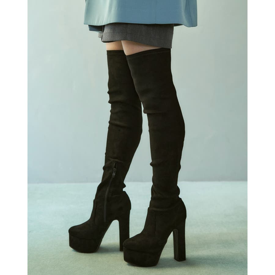 Mafmof(マフモフ)13 5cmヒールストーム入りストレッチ膝上ロングブーツ