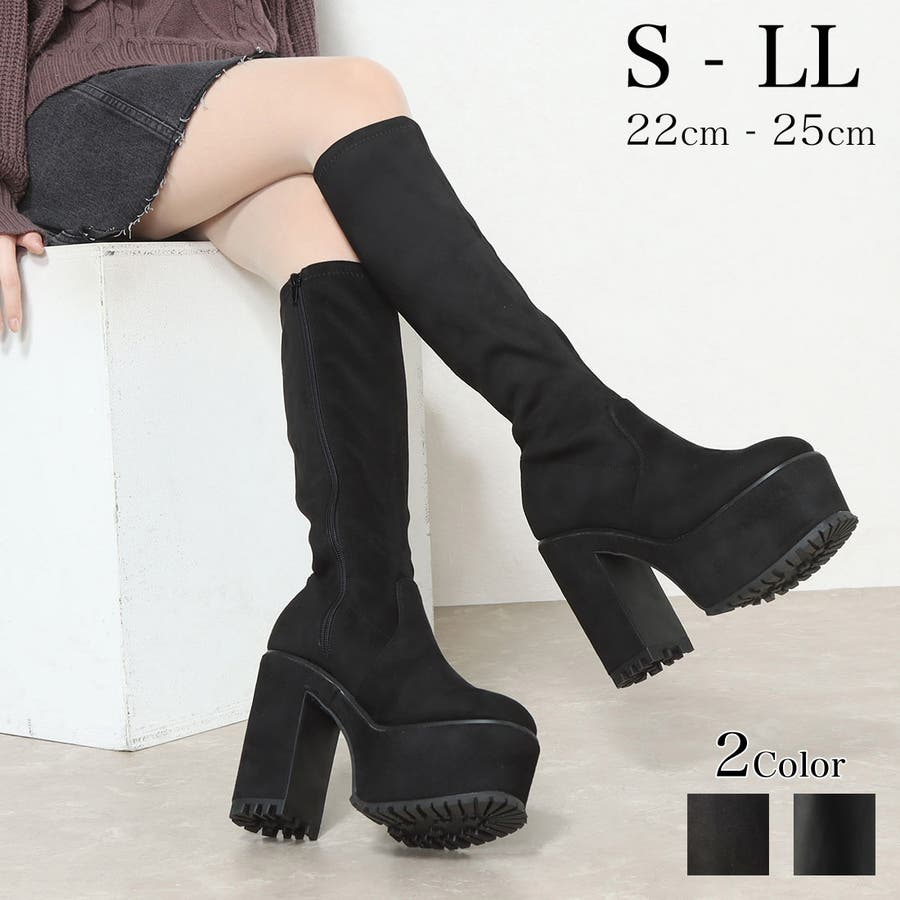 Mafmof(マフモフ)厚底ボリュームヒールストレッチロングブーツ