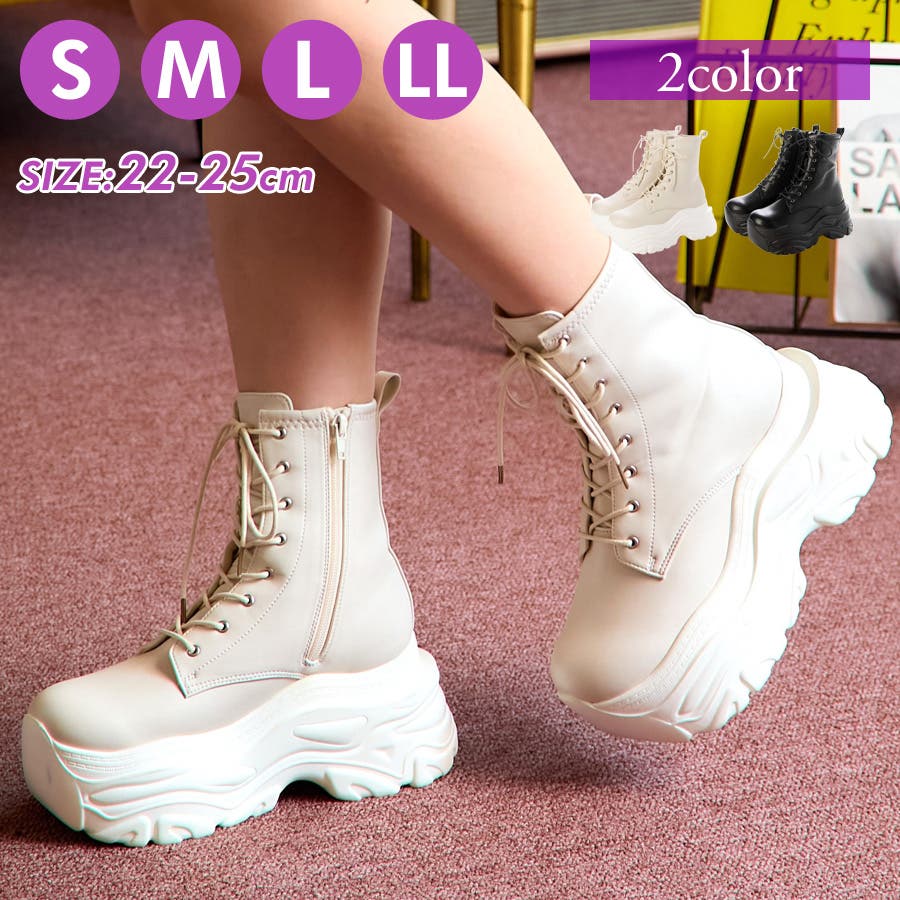 Mafmof(マフモフ)10cmメガ厚底クラッシュソールレースアップショートブー…