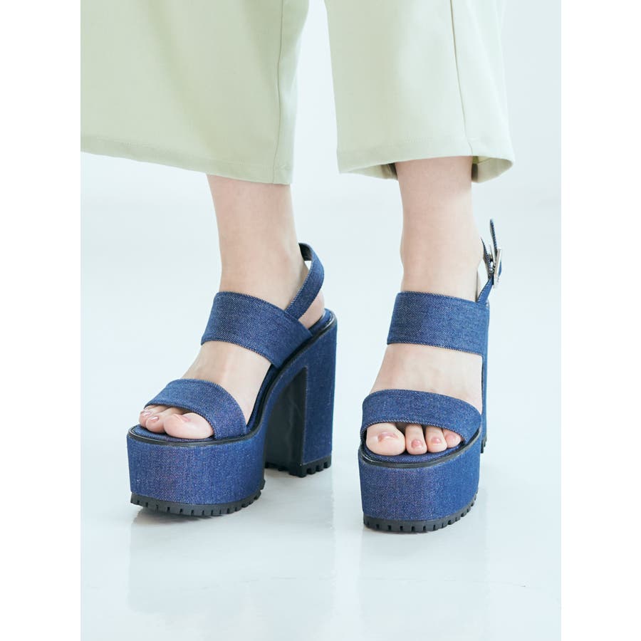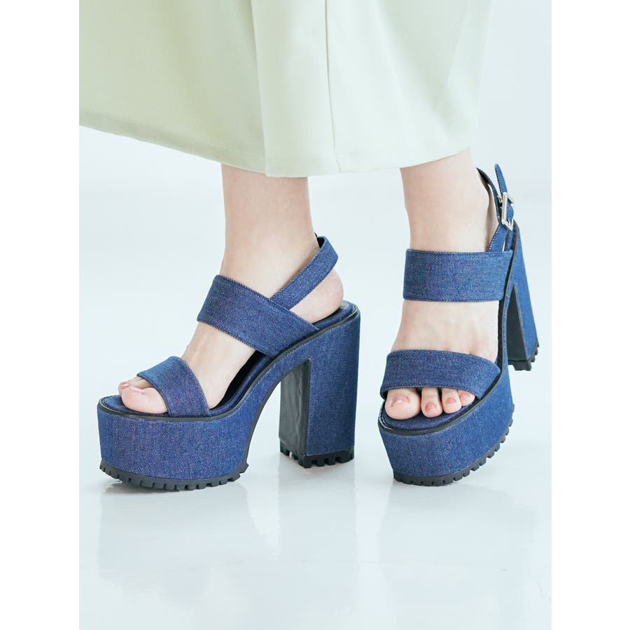 Mafmof(マフモフ)13cmヒール厚底ソールダブルベルトサンダル