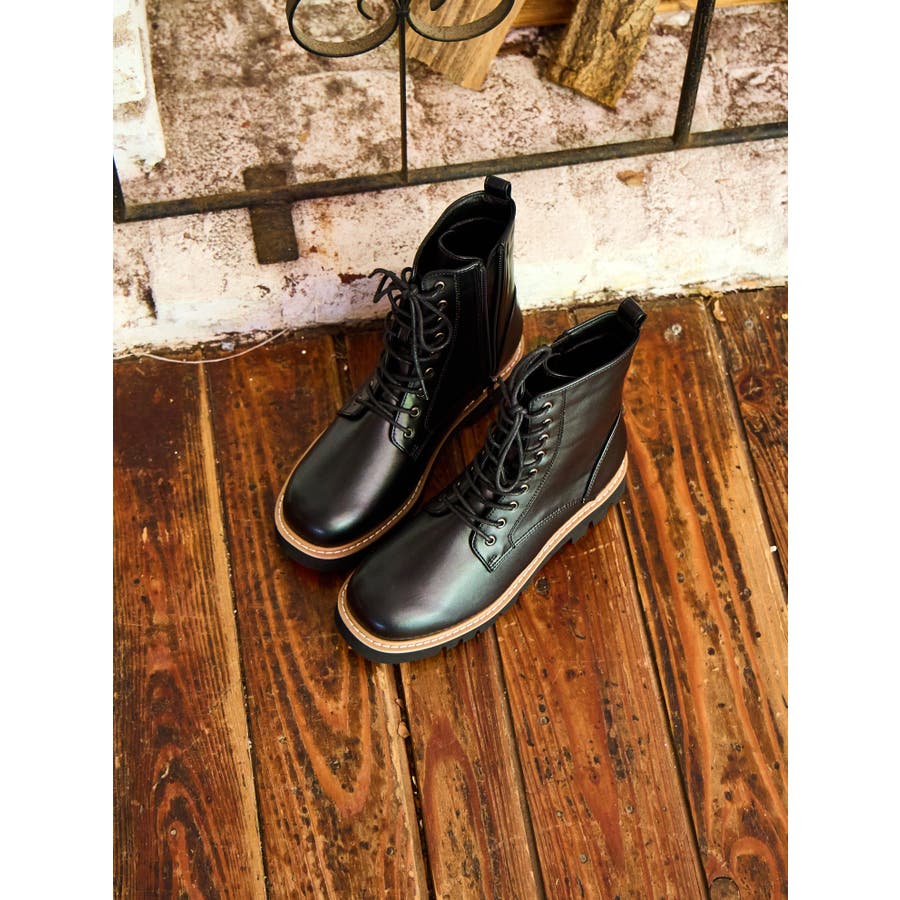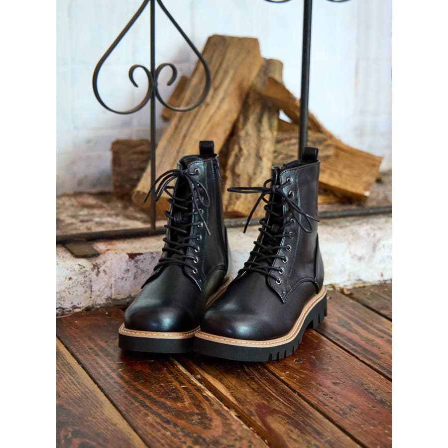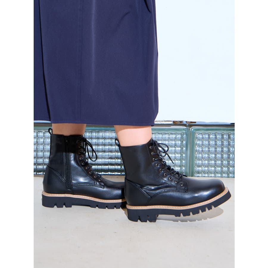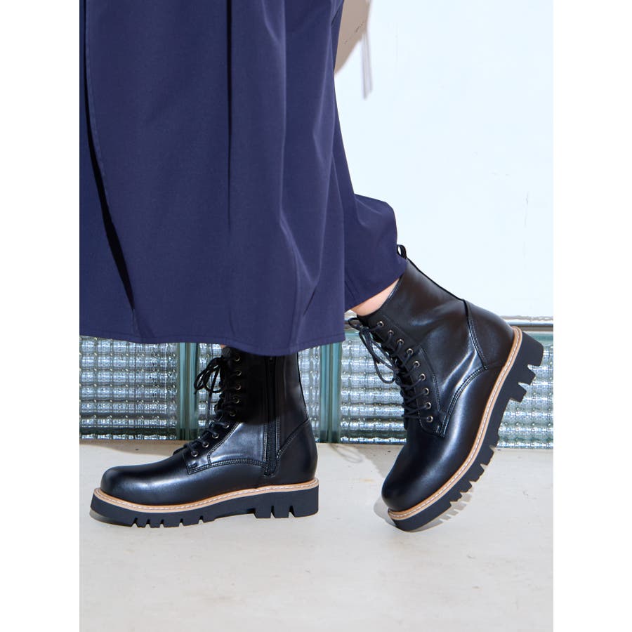 足元にボリュームを持たせた厚底レースアップブーツ。