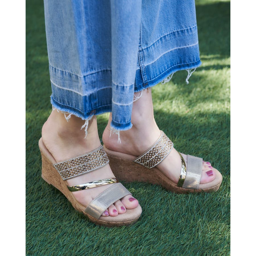 Realta(レアルタ)7 5cmウェッジソールキラキラビジューミュールサンダル