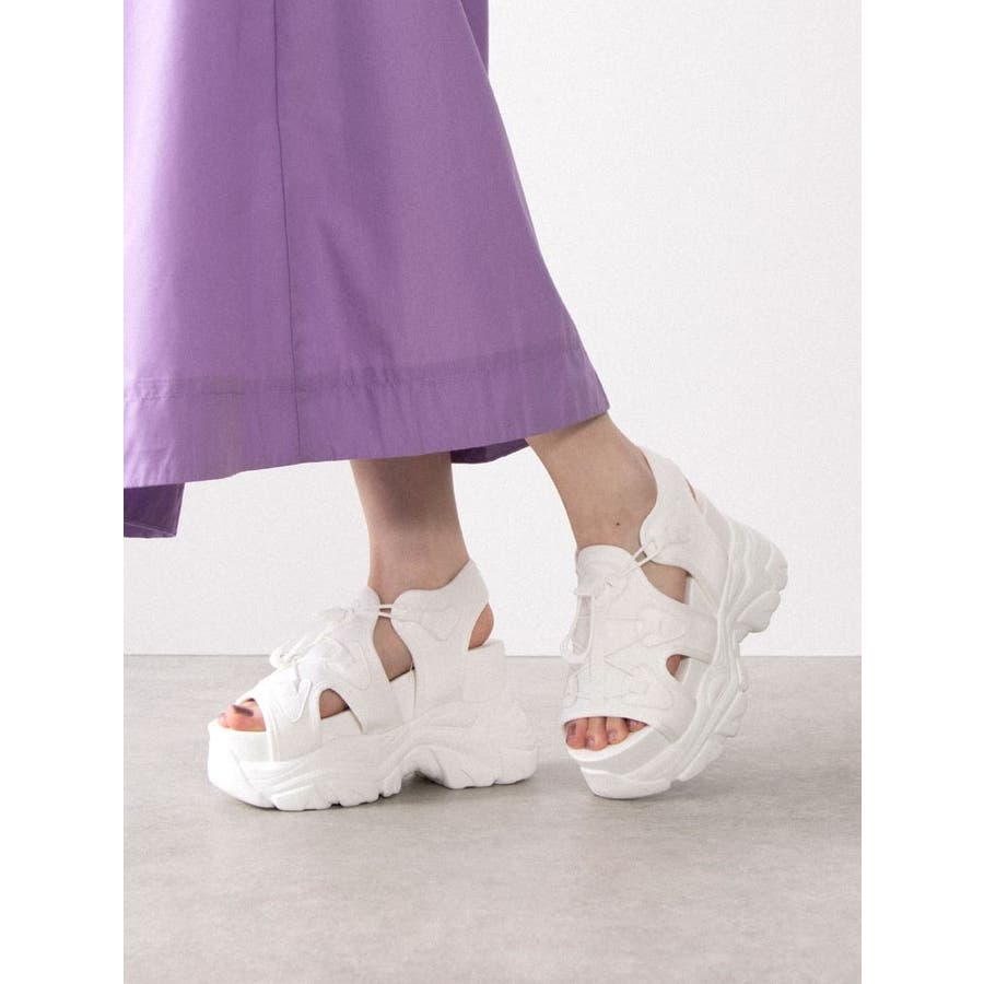 約10cmの厚底で、履くだけでスタイルアップも叶う優れたアイテム。