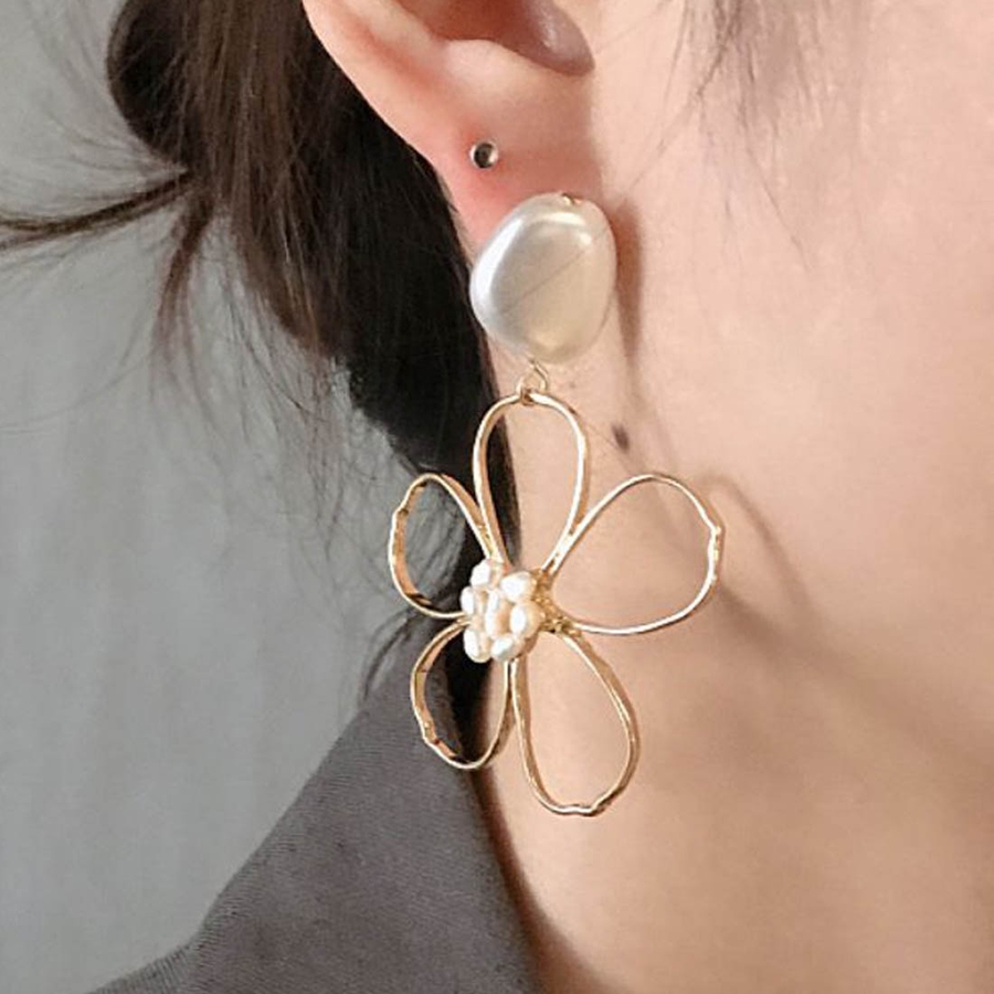 女性らしいデザインのホローフラワーピアス 可愛い お花