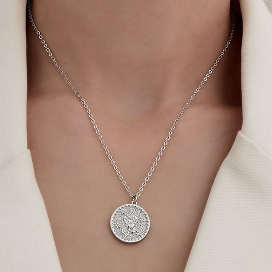 | 商品説明 | 流行のコインモチーフがお洒落なネックレス。 細めのチェーンが使用されており、コインのデザインが映えるネックレスです。 デコルテまでしっかりと長さがあるため、Vネックなど襟元が開いたトップスと合わせると相性抜群◎ 合わせ方次第で上品にもカジュアルにも楽しめる優秀アイテムです♪ | |