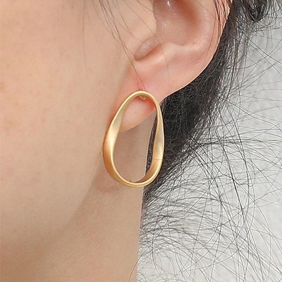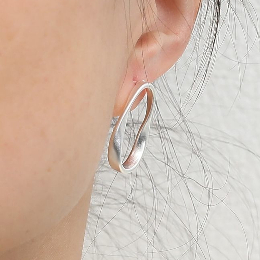 少しねじれたデザインが特徴の変形フープピアス お洒落 シンプル