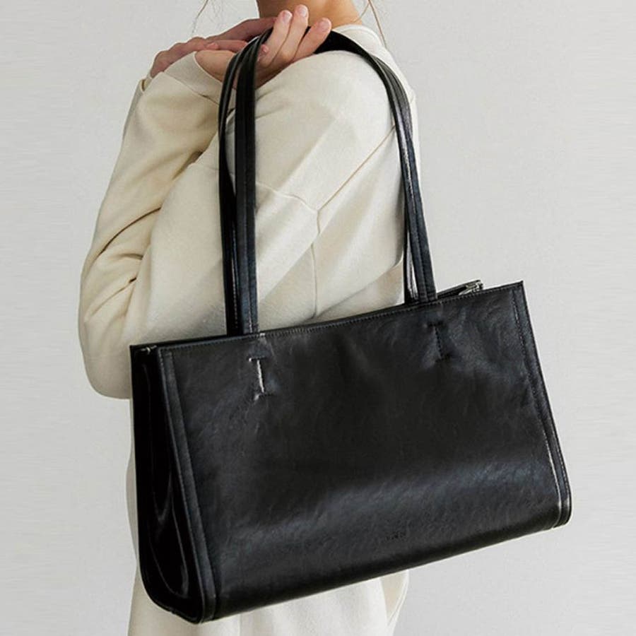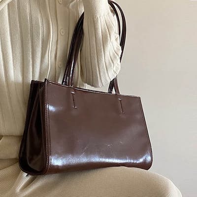 高級感のあるフェイクレザーを使用したトートバッグ キレイめ かっちり