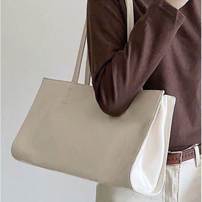 | 商品説明 | フェイクレザーで高級感のあるトートバッグ。 シンプルなデザインで、オンオフ問わずに使えるのが嬉しいポイントです。 また、取っ手が長いので肩に掛けるときも楽ちん♪ 外ポケットが備わっているので、細かいアイテムを入れるのに便利です。 | |