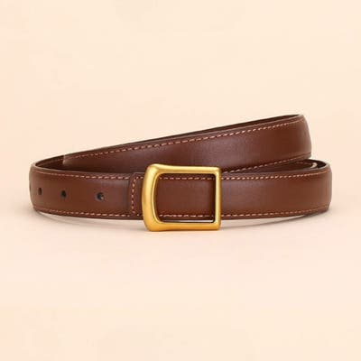 長く愛用したくなるスクエアバックル本革ベーシックベルト アクセサリー ファッショ…