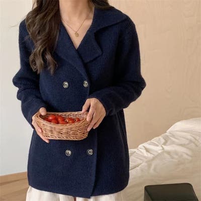 ニットジャケット 韓国風カーディガン ダブルブレスト