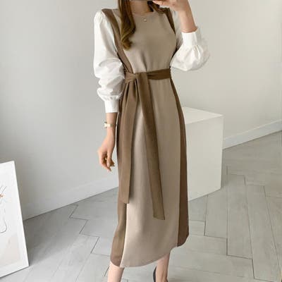 こなれ感のある大人コーデに仕上げるブラウス袖切り替えバイカラーワンピース