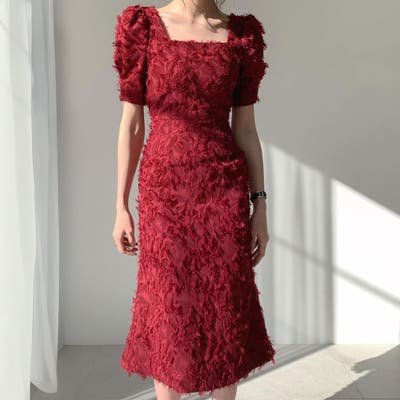 特別なシーンにぴったりなワンピース ミモレ丈 スクエアネック