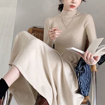 上品さとトレンドを兼ね備えたニットワンピース オフィス オフィスカジュアル