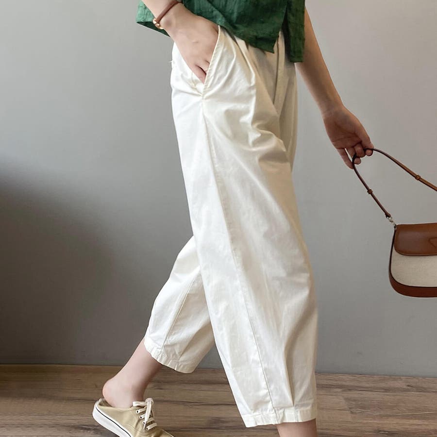 八分丈がポイントのバナナパンツ クロップドパンツ ハイウエスト