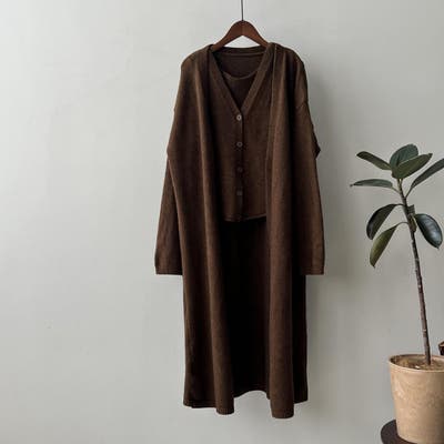 | 商品説明 | ベーシックなデザインで、スタイリングもしやすいアイテム。 深めのVネックでデコルテや首、顔まわりをスッキリとキレイに見せてくれます。 トップスはボタンの留め方で印象を変え、ノースリーブなのでベストとしても活躍。 カーディガンはロング丈で足元までストンと落ち、全体をスッキリと仕上げてくれます。 | |