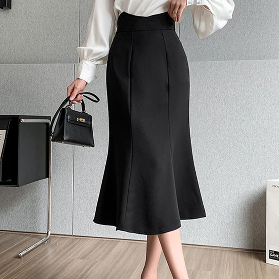 上品なシルエットのフィッシュテールミドル丈スカート 冬 ハイウエスト
