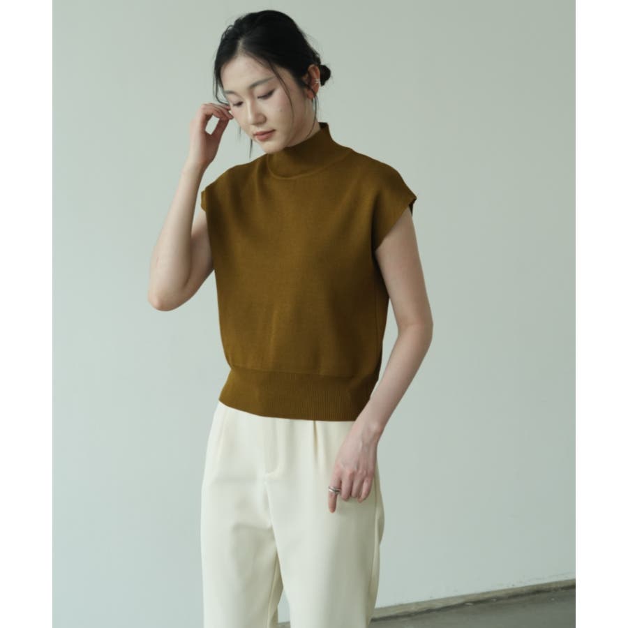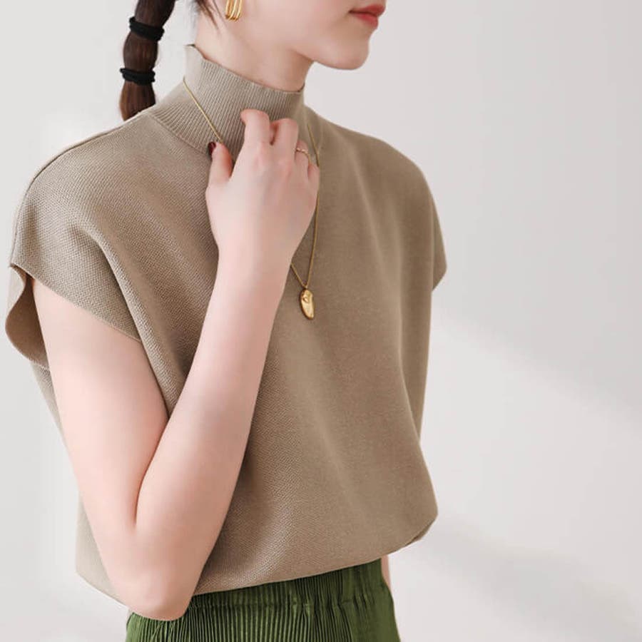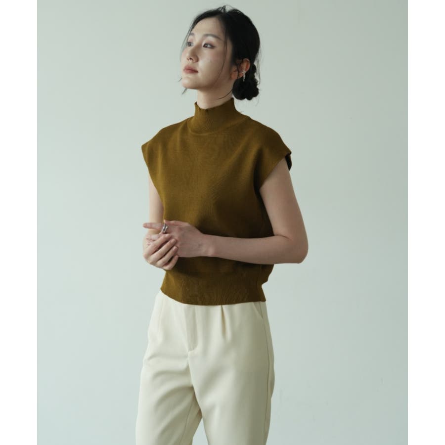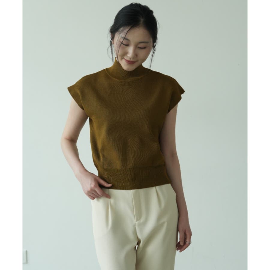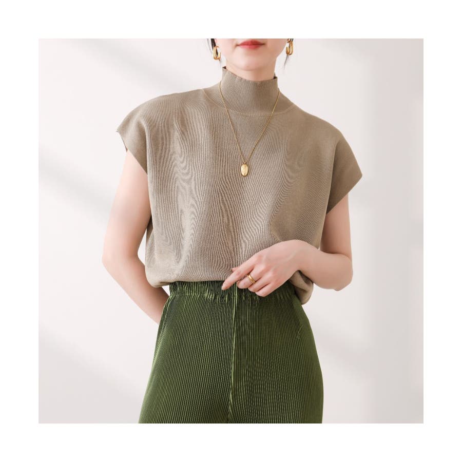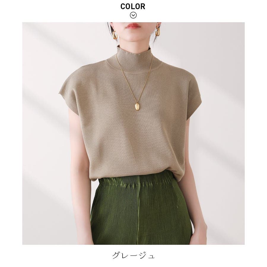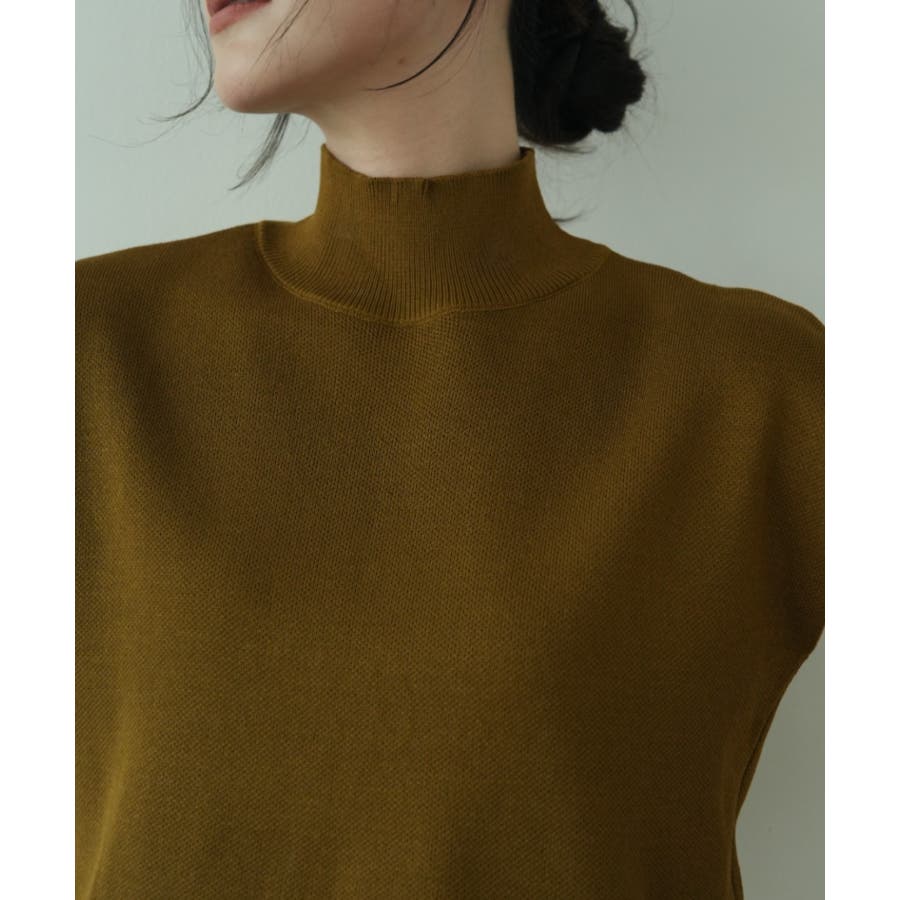 シンプルなデザインが上品なフレンチスリーブハイネックニットトップス モックネック