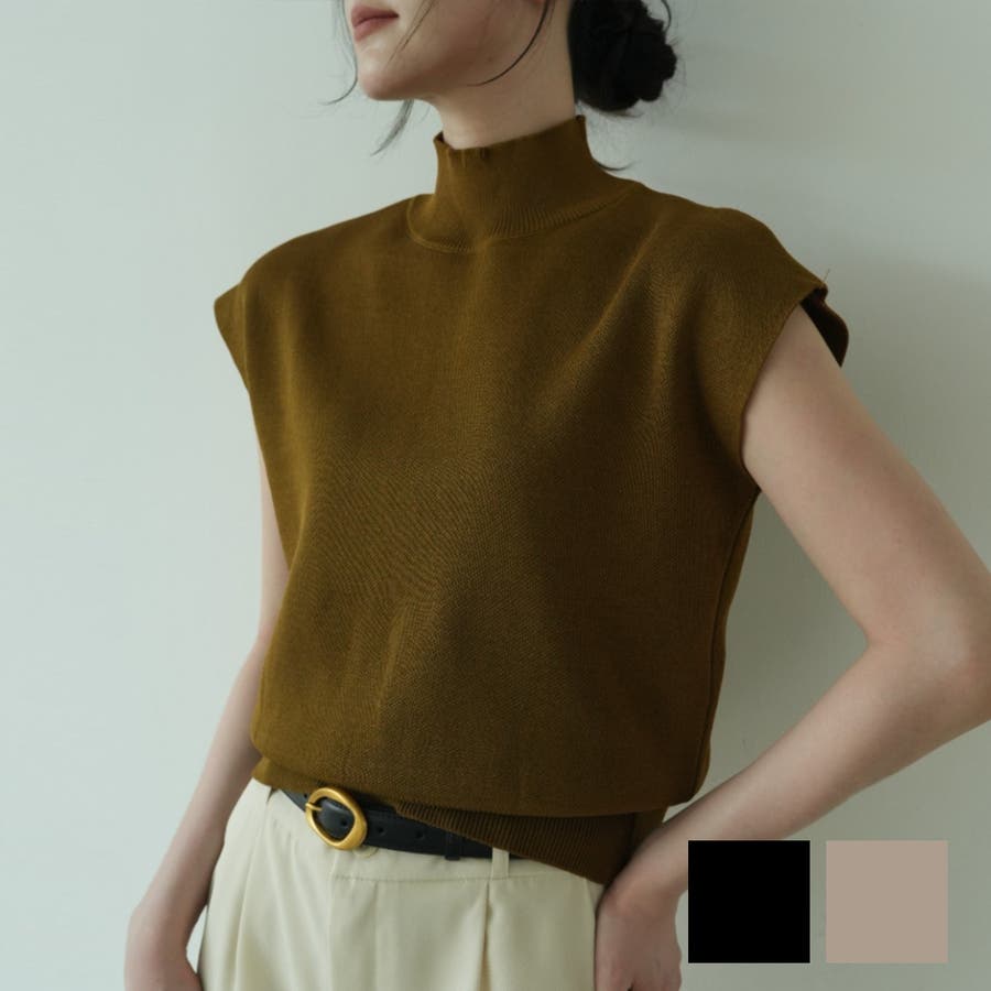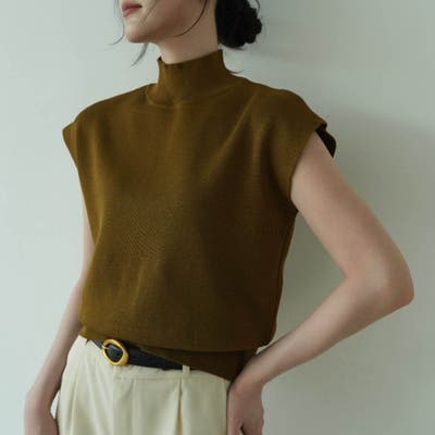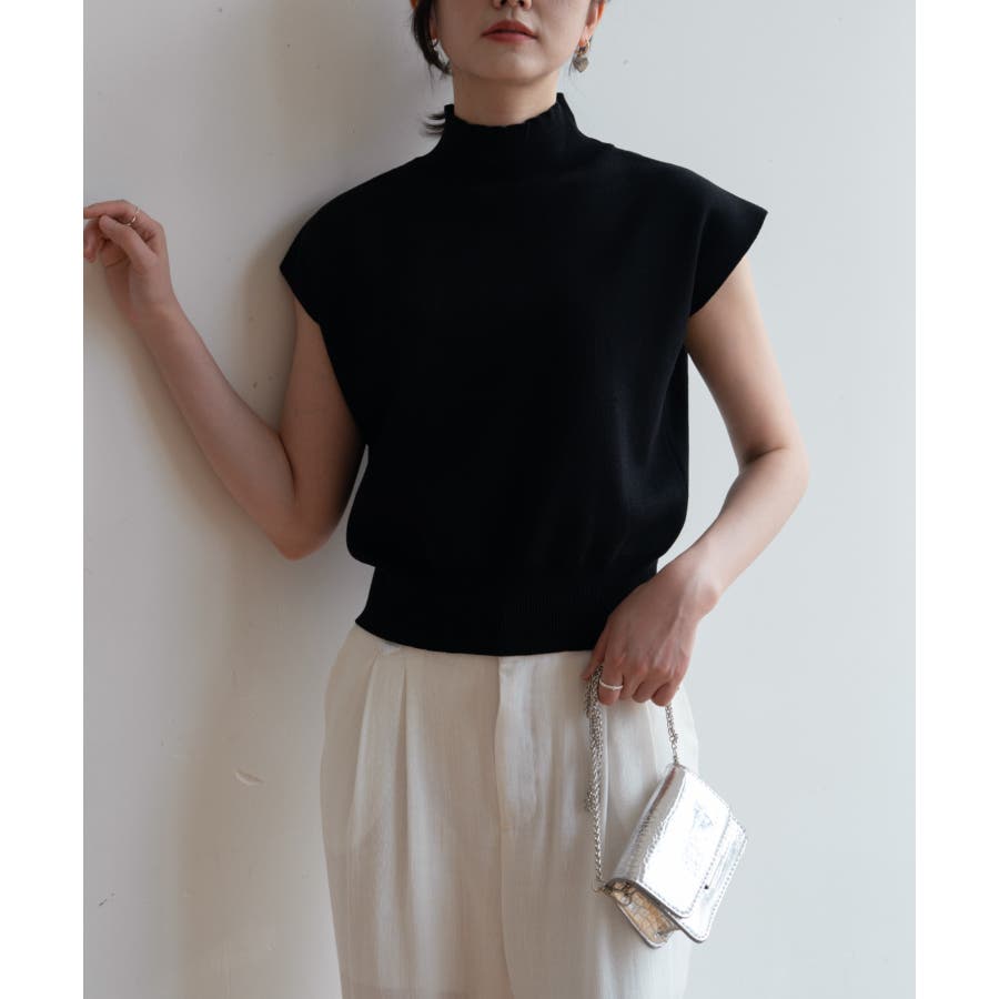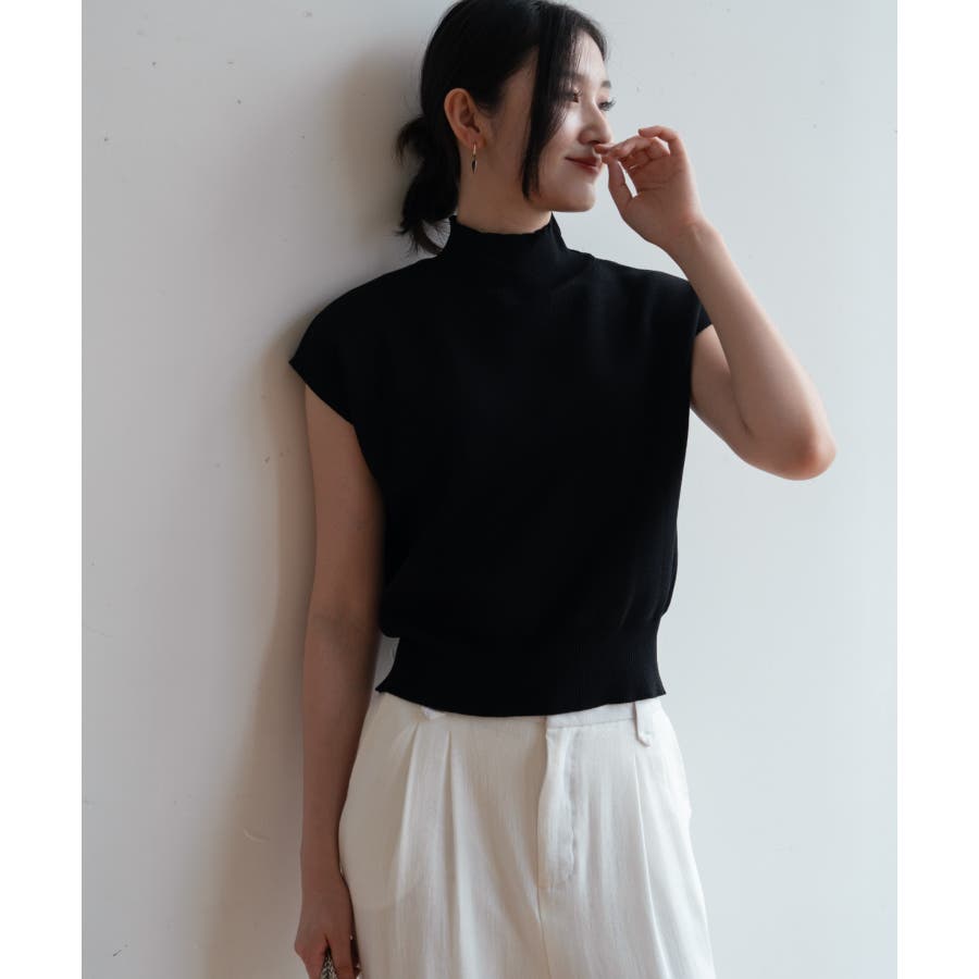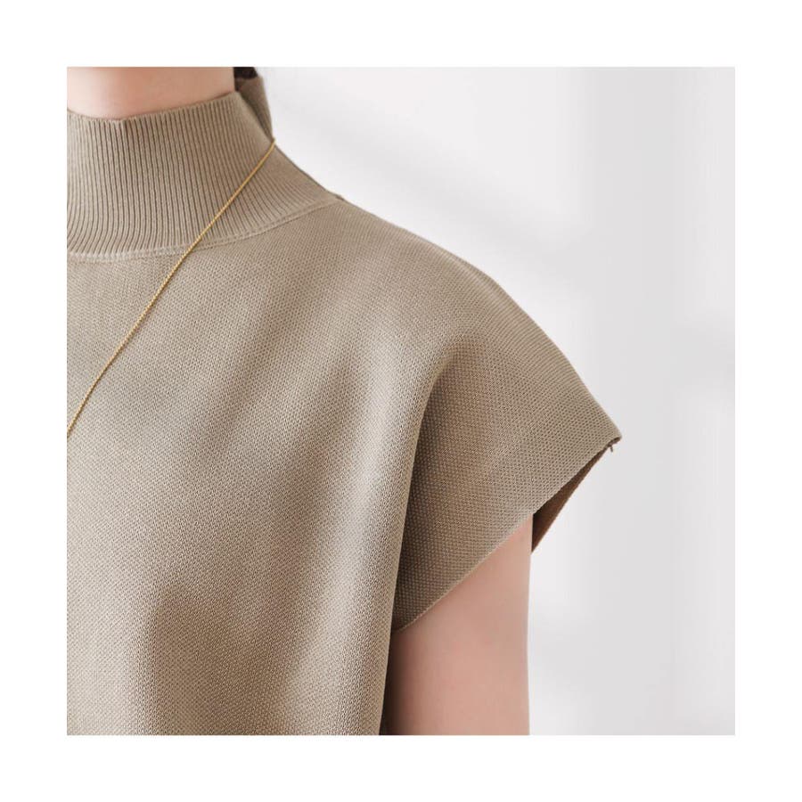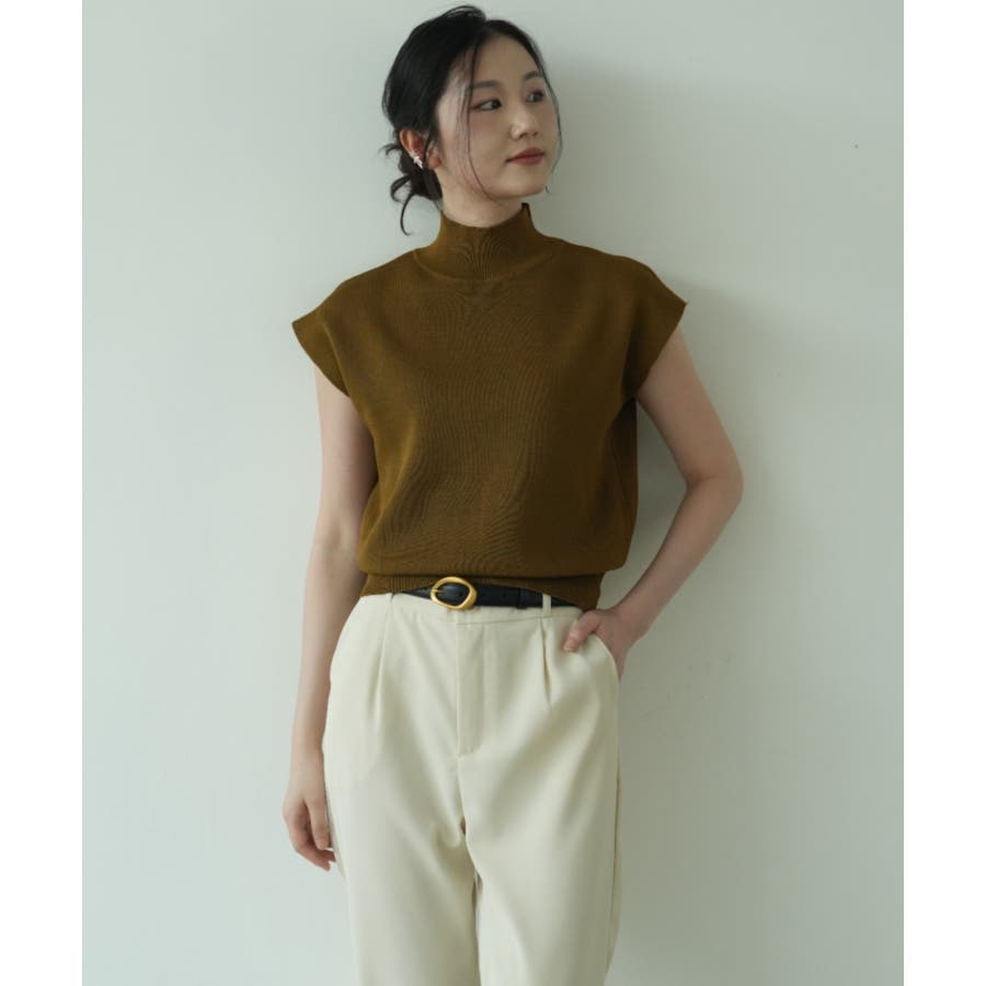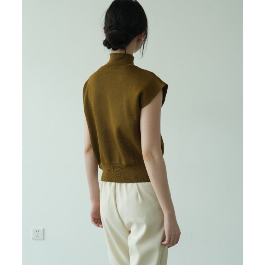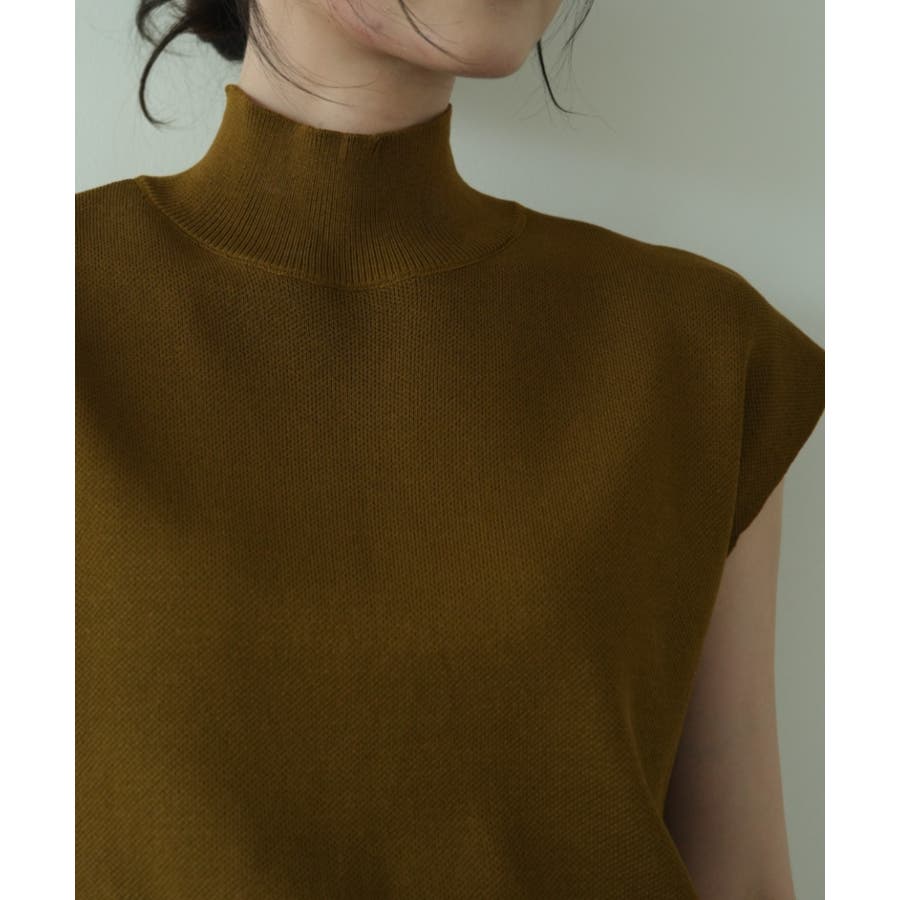 シンプルなデザインが上品なフレンチスリーブハイネックニットトップス モックネック