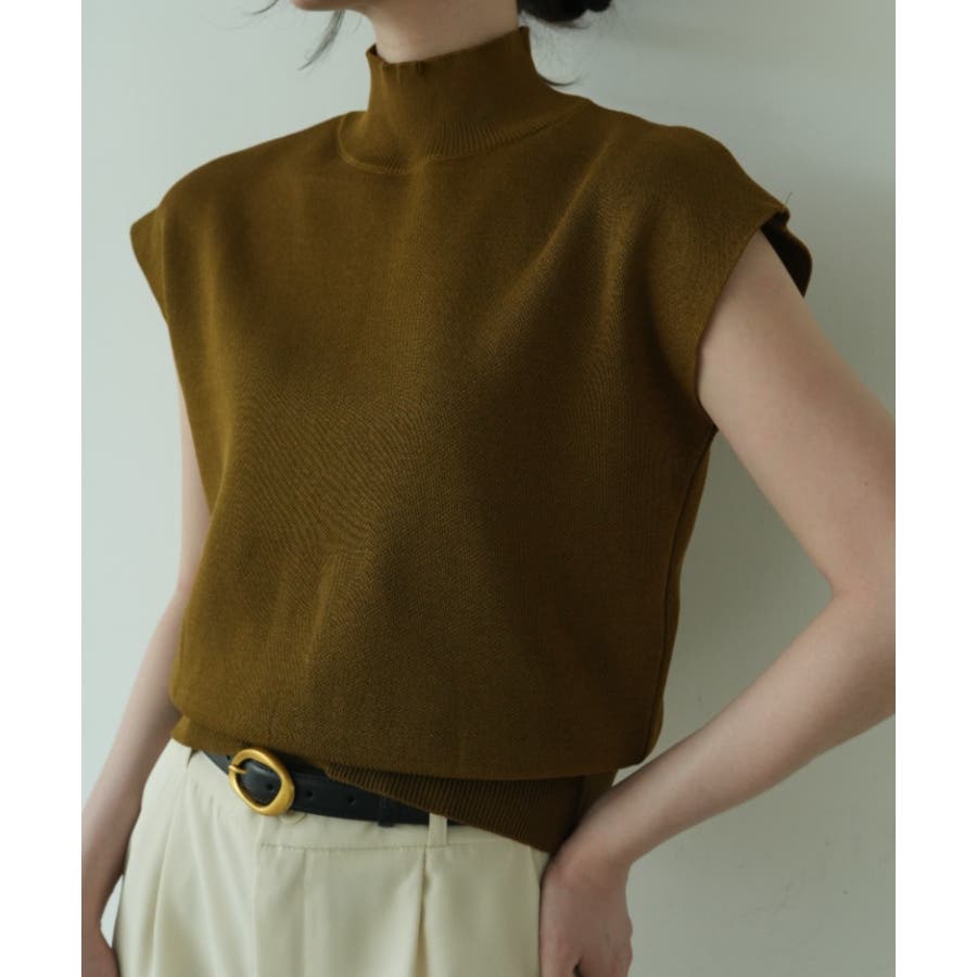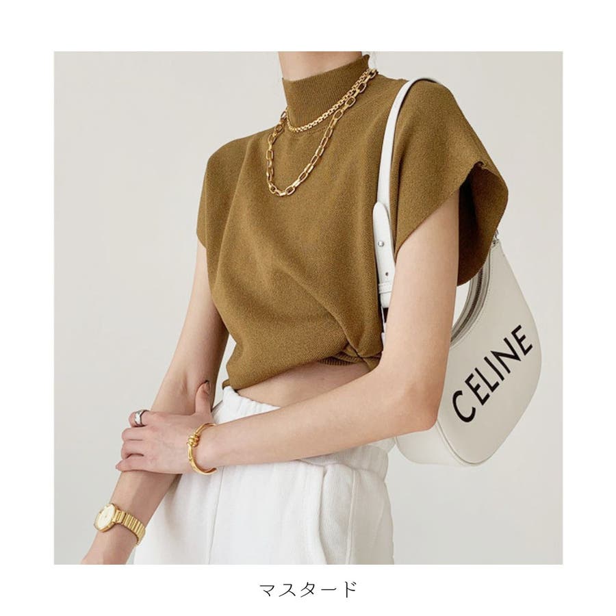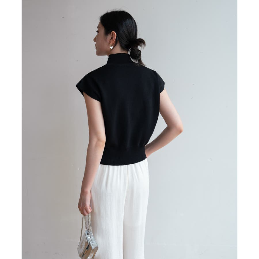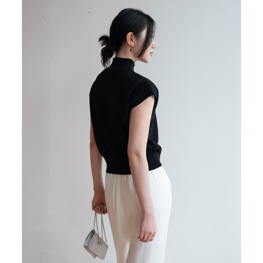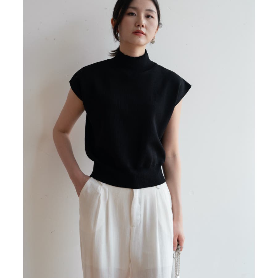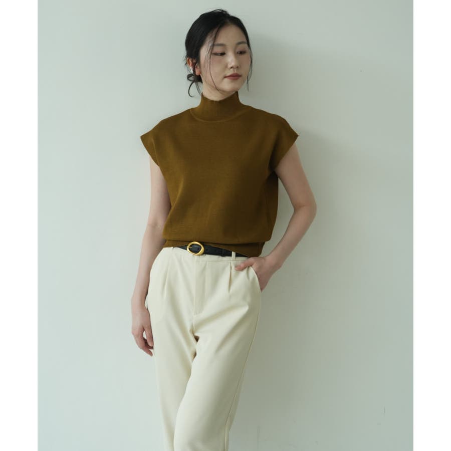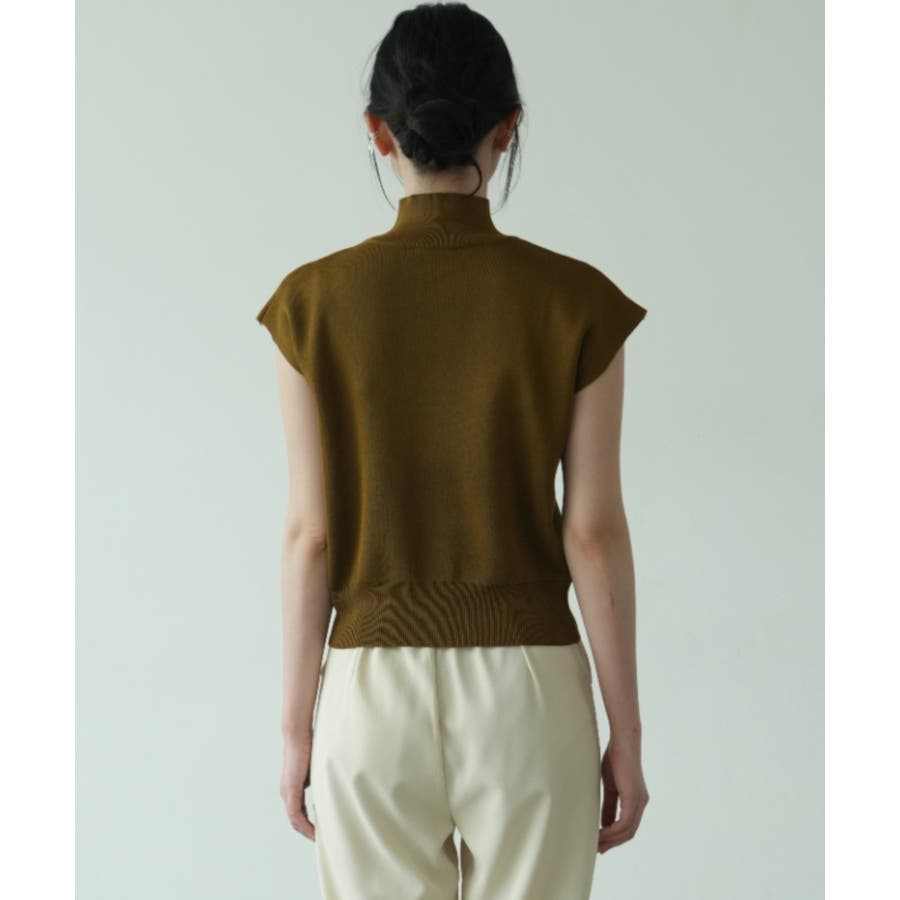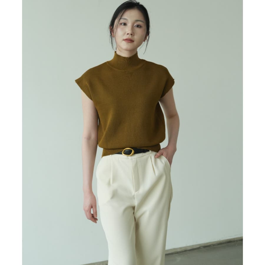 シンプルなデザインが上品なフレンチスリーブハイネックニットトップス モックネック