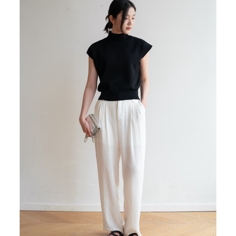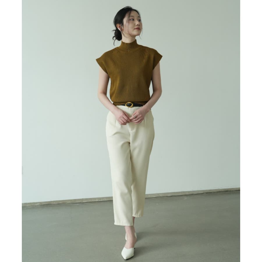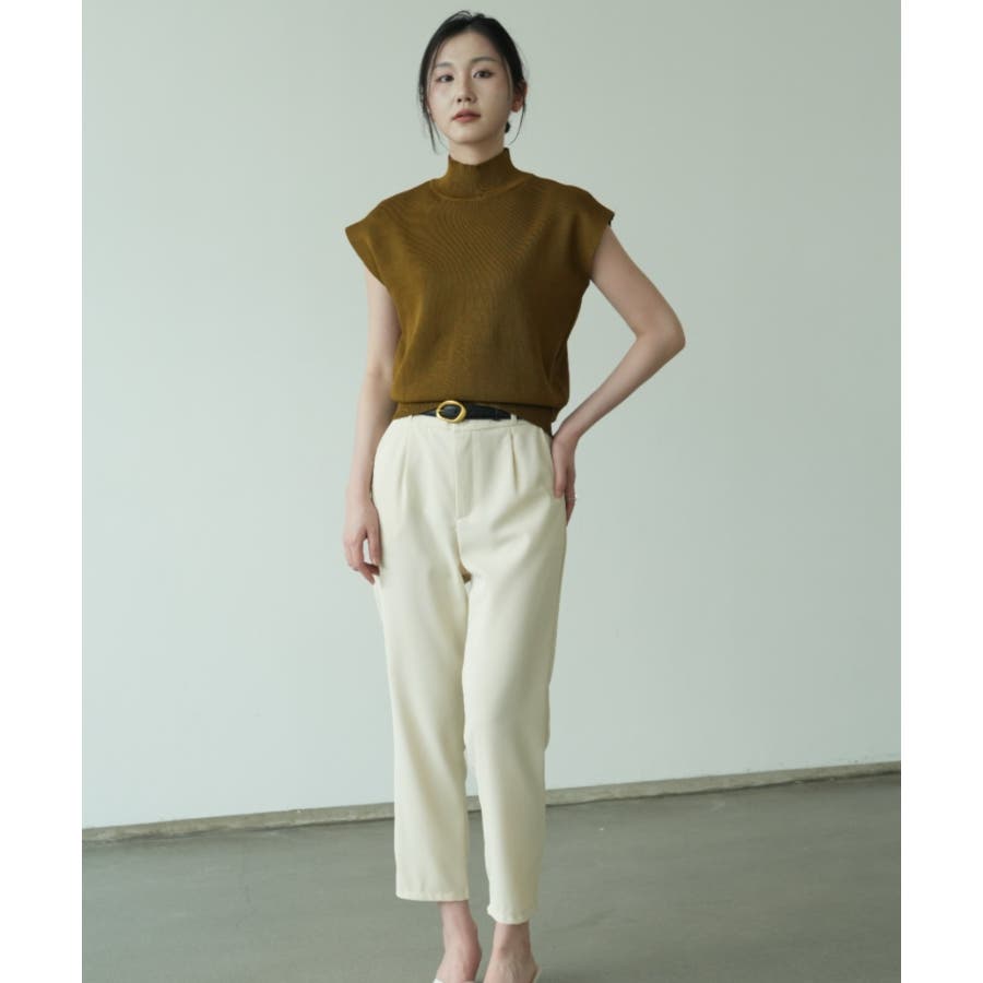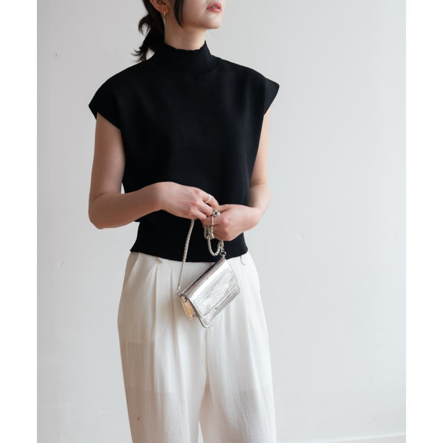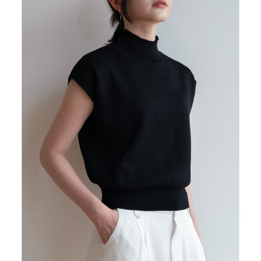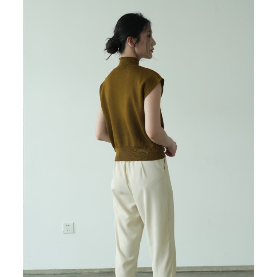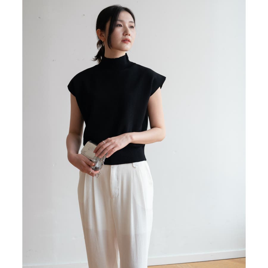 シンプルなデザインが上品なフレンチスリーブハイネックニットトップス モックネック
