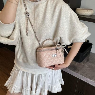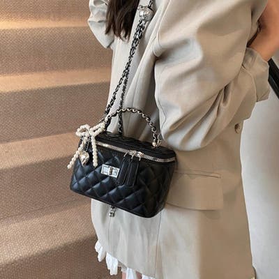 トレンドのチャーム付きキルティングスクエアショルダーバッグ クリスマス レディース
