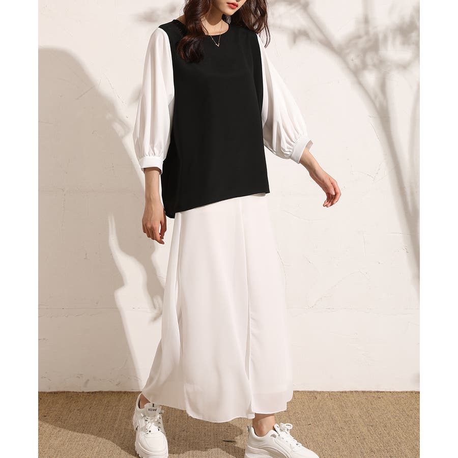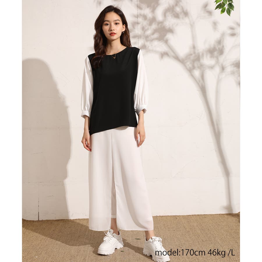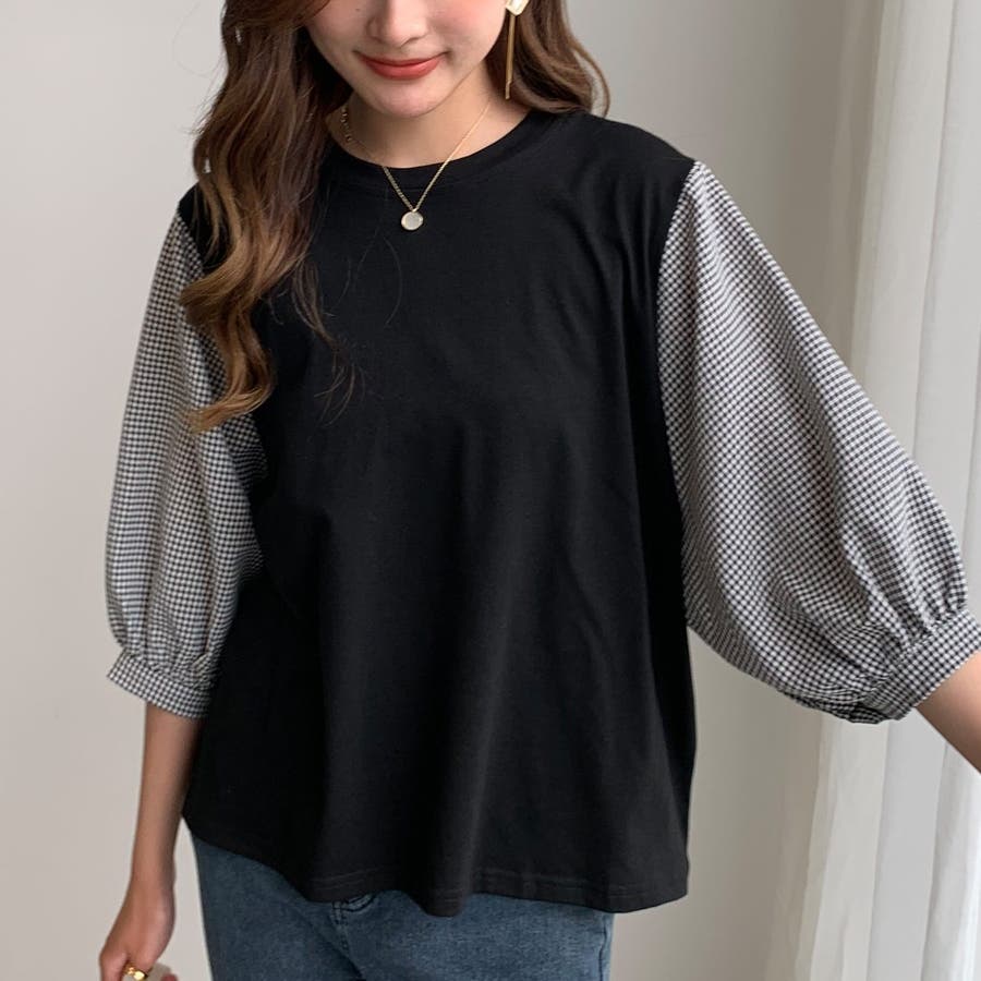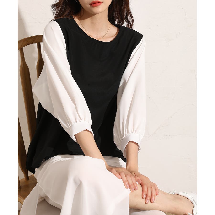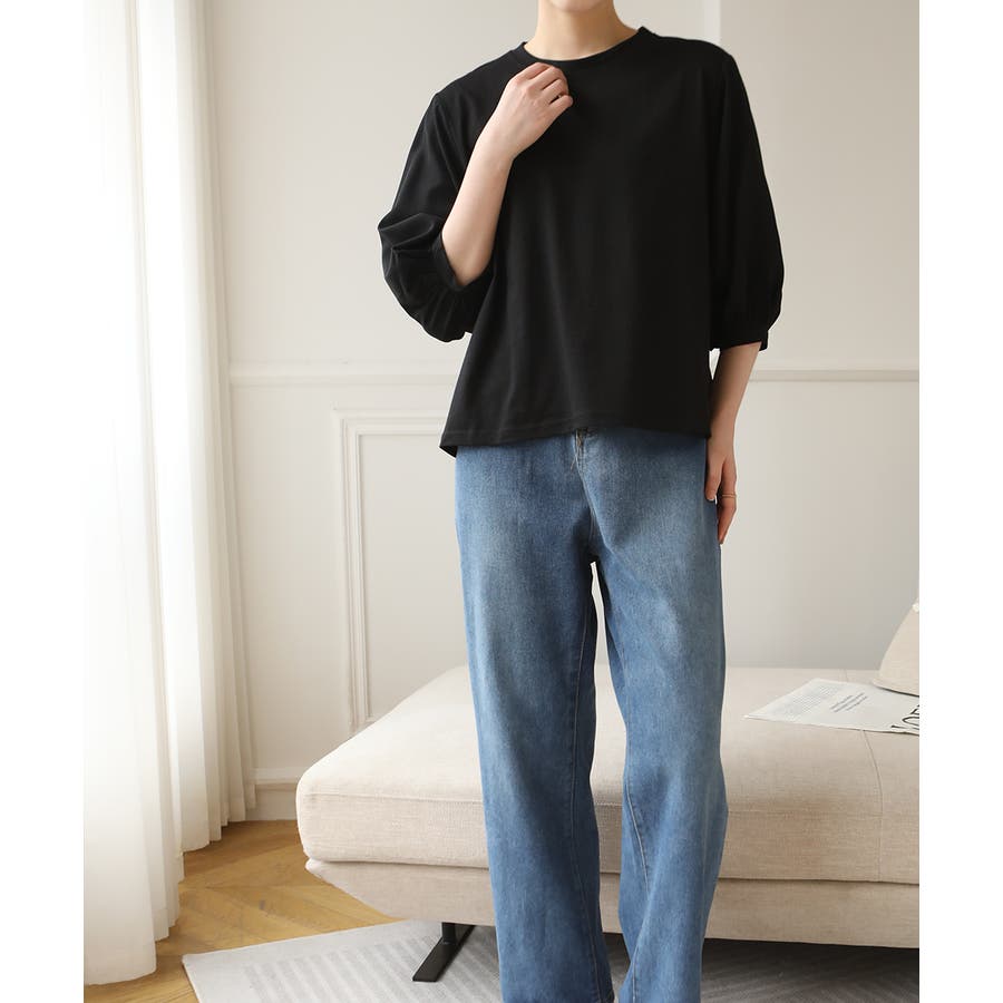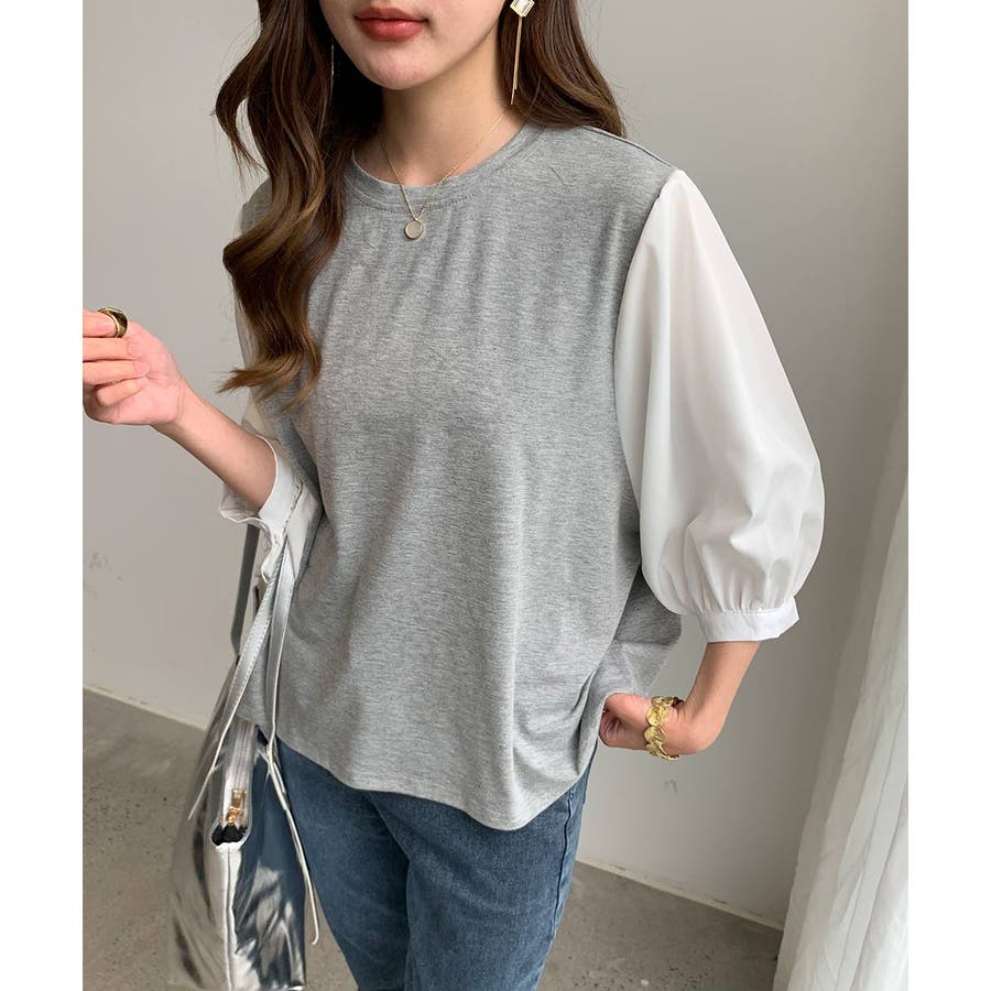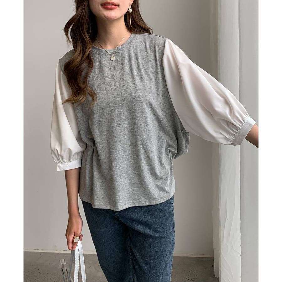 ぽわん袖ボリュームスリーブトップス 七分袖 レディース