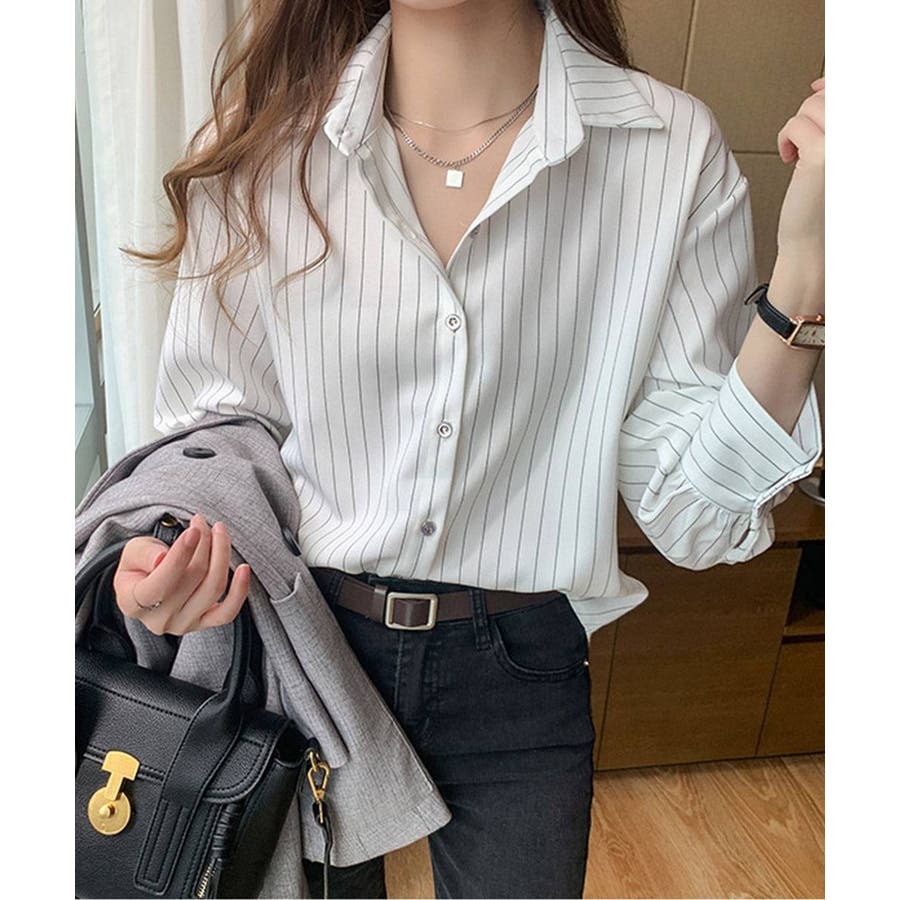 | 商品説明 | コーデを大人っぽくきれいめに仕上げてくれる長袖シャツ。 主張しすぎない細めのストライプデザインがオシャレで、オフィスにもぴったりな一着です。 程よくゆったりしたシルエットで抜け感も演出◎ 1枚で着るのはもちろんレイヤードコーデにも最適なので、ロングシーズンで幅広いオシャレが楽しめます♪ | |