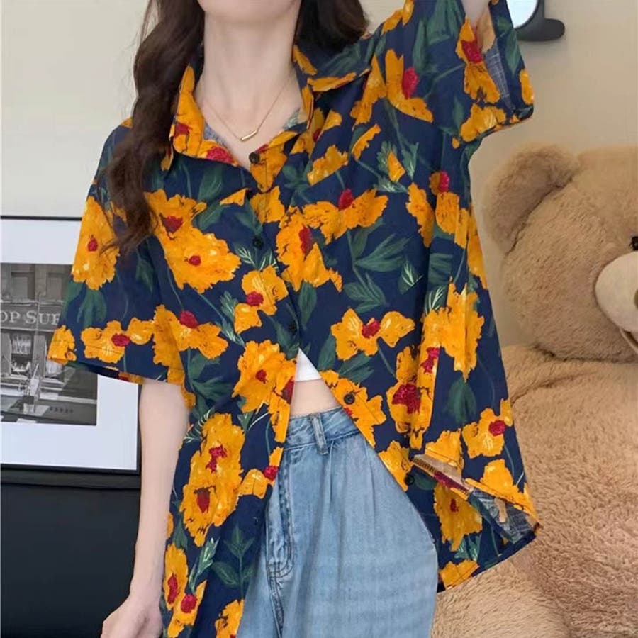 個性を思い切り楽しめる花柄プリント半袖シャツ ブラウス 前開き