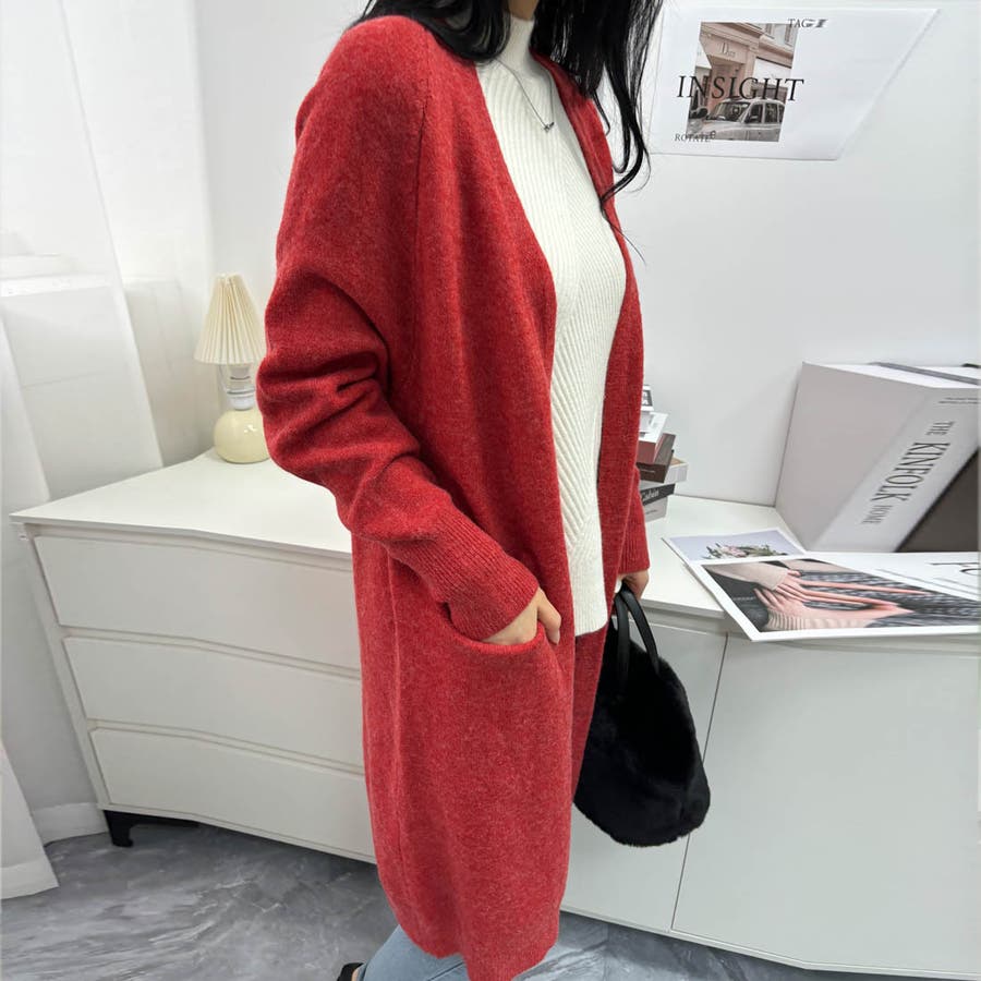 ロング丈の綺麗めカーディガン 女性らしい 冬物