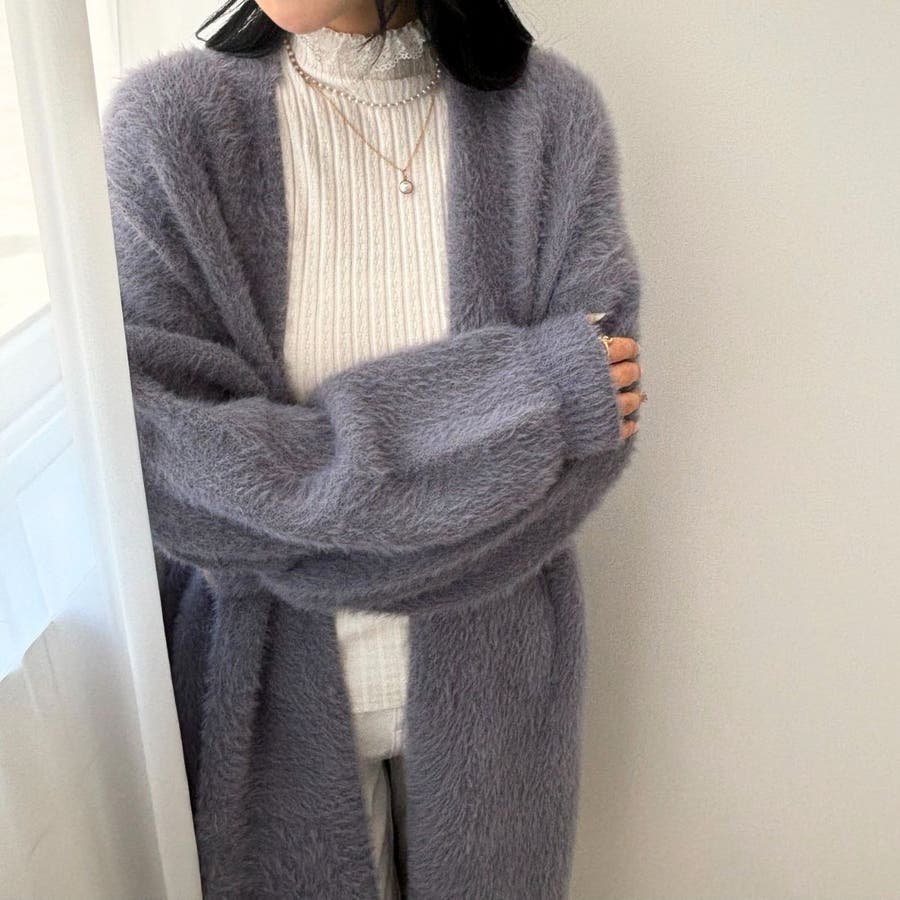 シャギーニットあったかふわふわロングカーディガン カーディガン ロングカーディガ…