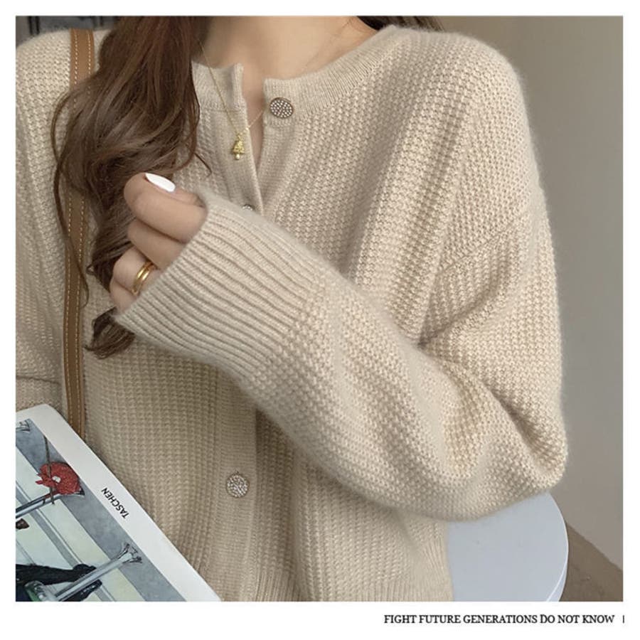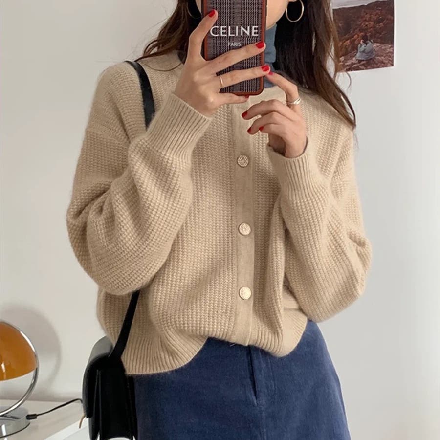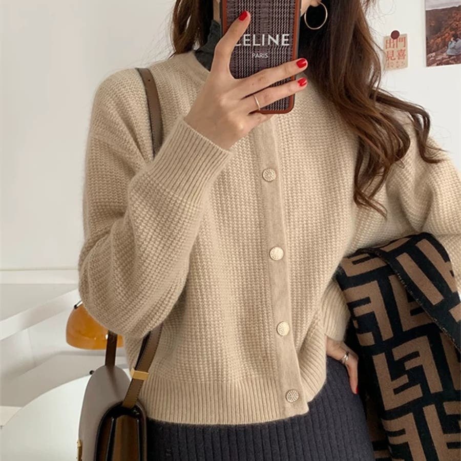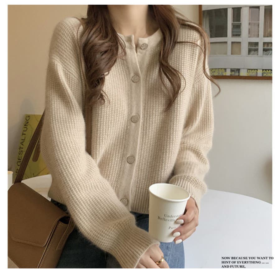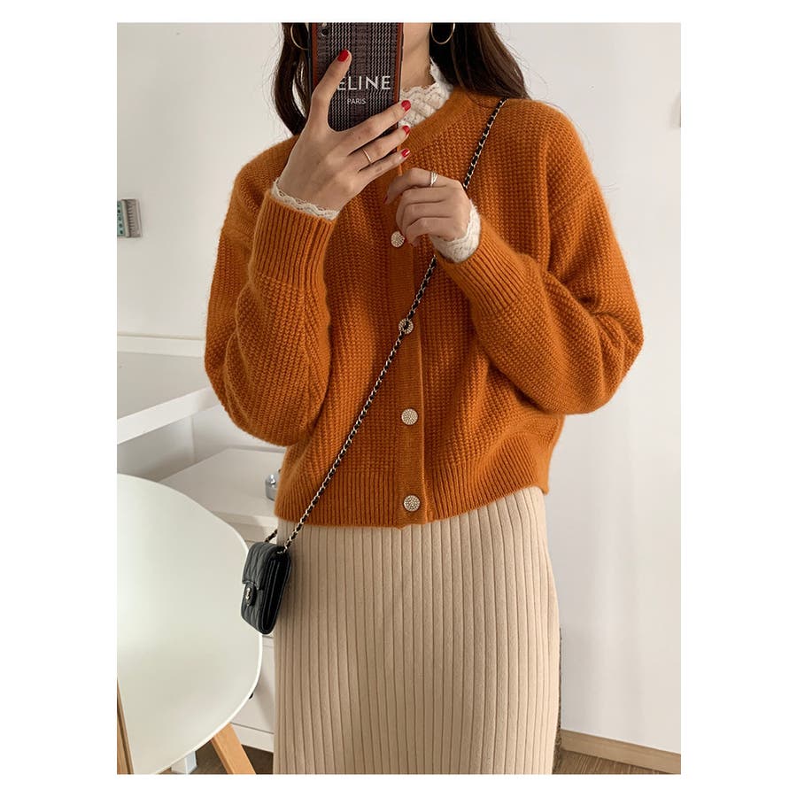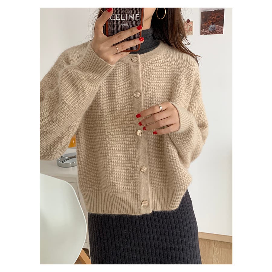 程よいフィット感でコンパクトに着こなせるワッフルニットカーディガン 長袖