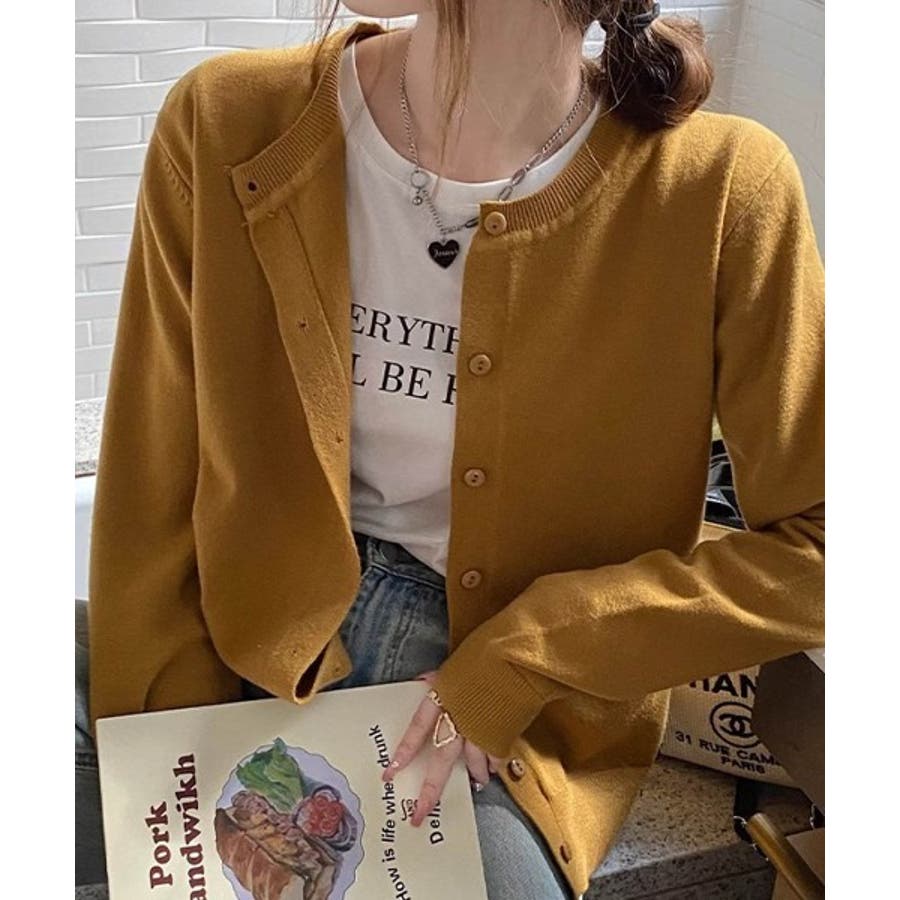 冬に使えるシンプルながらもトレンド感もあるクルーネックカーディガン トップス 羽…