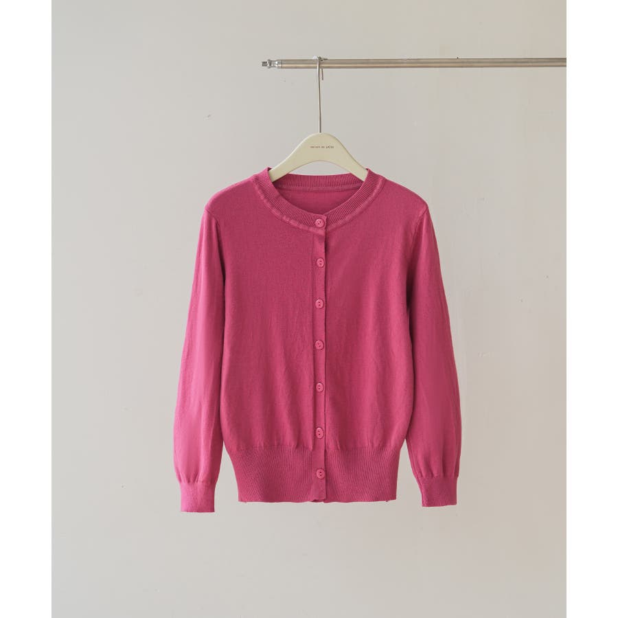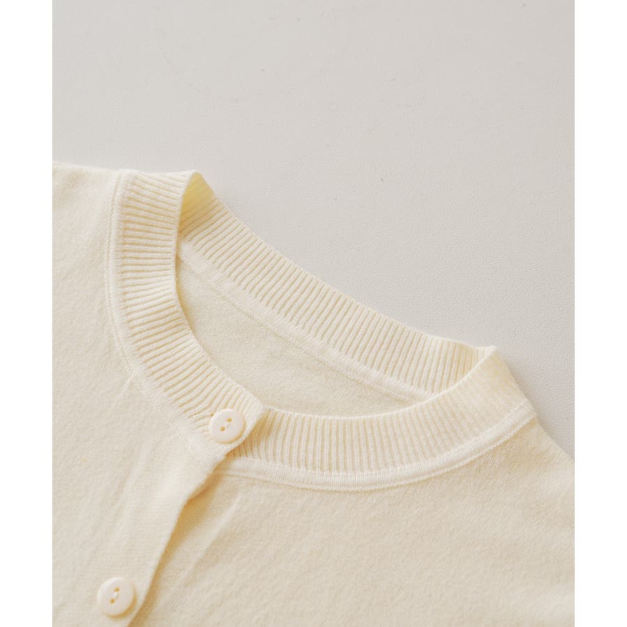 | 商品説明 | 肌に優しいボリューム感と、ふんわりとした質感が魅力的なクルーネックカーディガン。 柔らかさが心地よく、リラックスした気分で着られます。 身幅にゆとりを持たせたデザインで、動きやすく快適さも抜群! しっかりとした編み地が特徴で、ボタンを留めれば、トップスとしても楽しめるデザインです。コンパクトな形ながらも、程よいゆったり感が魅力。 裾や袖のリブ部分がしっかりと締まり、全体にメリハリが生まれ、着る人を美しく引き立てます。 | |