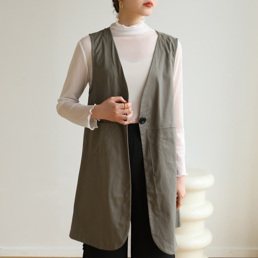 | 商品説明 | Vネックがポイントのノーカラージレ。 フロントボタンを留めるとノースリーブワンピースを重ね着したような印象になるお洒落アイテムです♪ Vネック×ノーカラーで上半身がすっきり◎ 小さすぎず、オーバーすぎないサイズ感で、お手持ちのアイテムにサラッと重ねるだけでスタイルアップも叶えてくれる優秀な1着です! | |