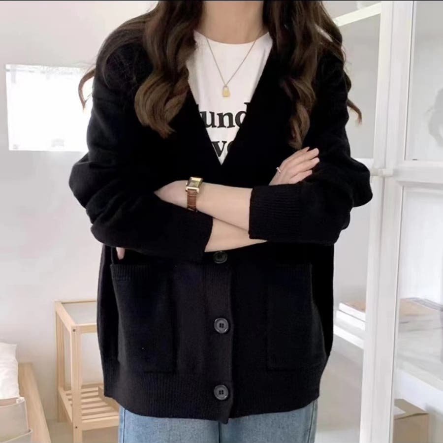 着回し力抜群のVネックニットカーディガン 無地 セーター
