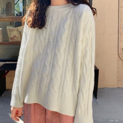 ケーブル編みが今年っぽくて可愛いプルオーバーニット ケーブル セーター
