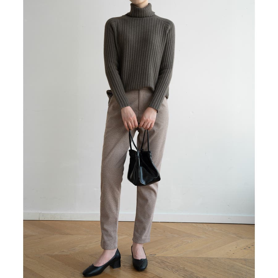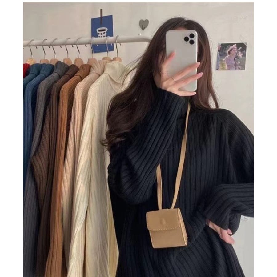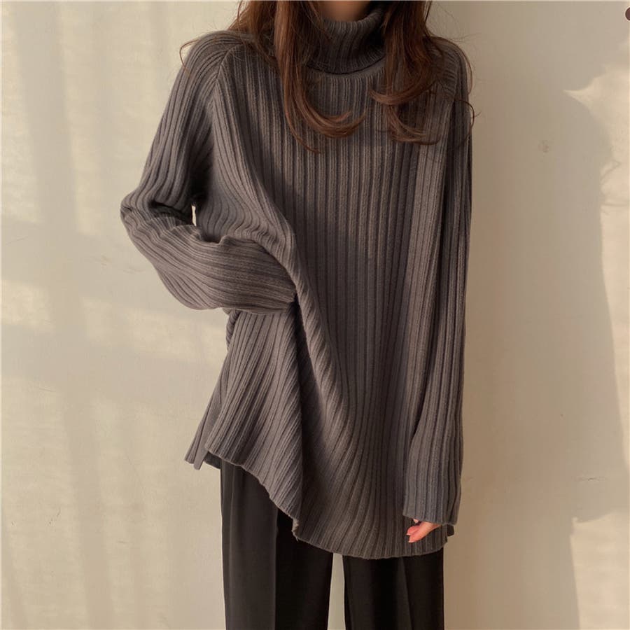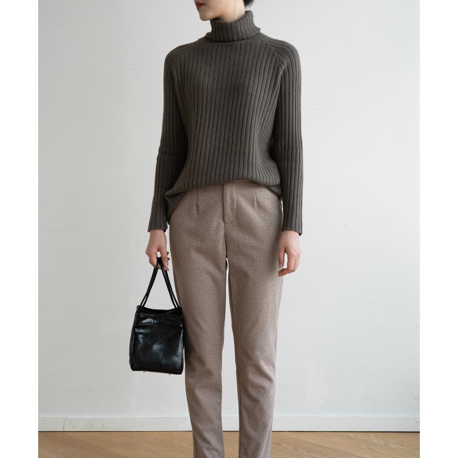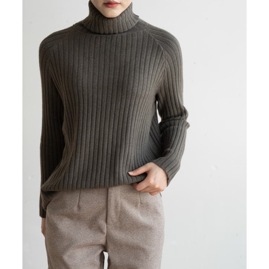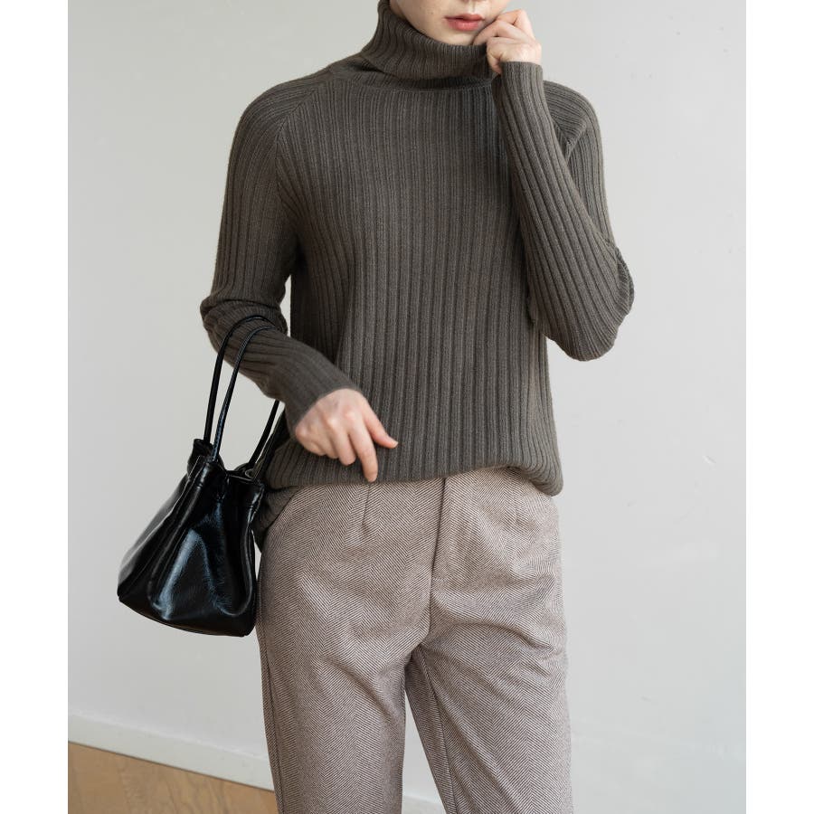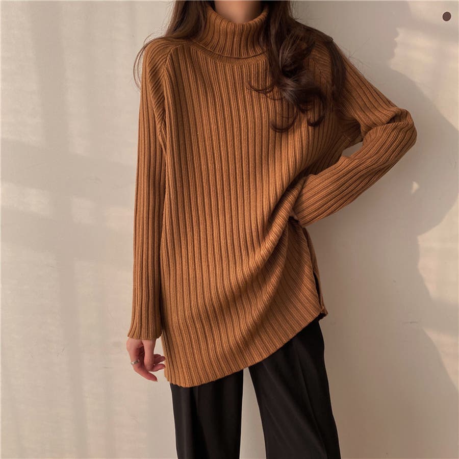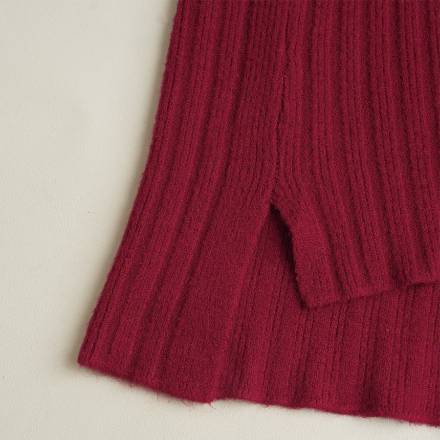 【レッド】優しい質感タートルネックで暖か美シルエットリブニット シンプル韓国ファッション